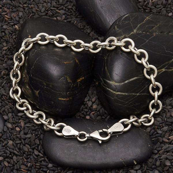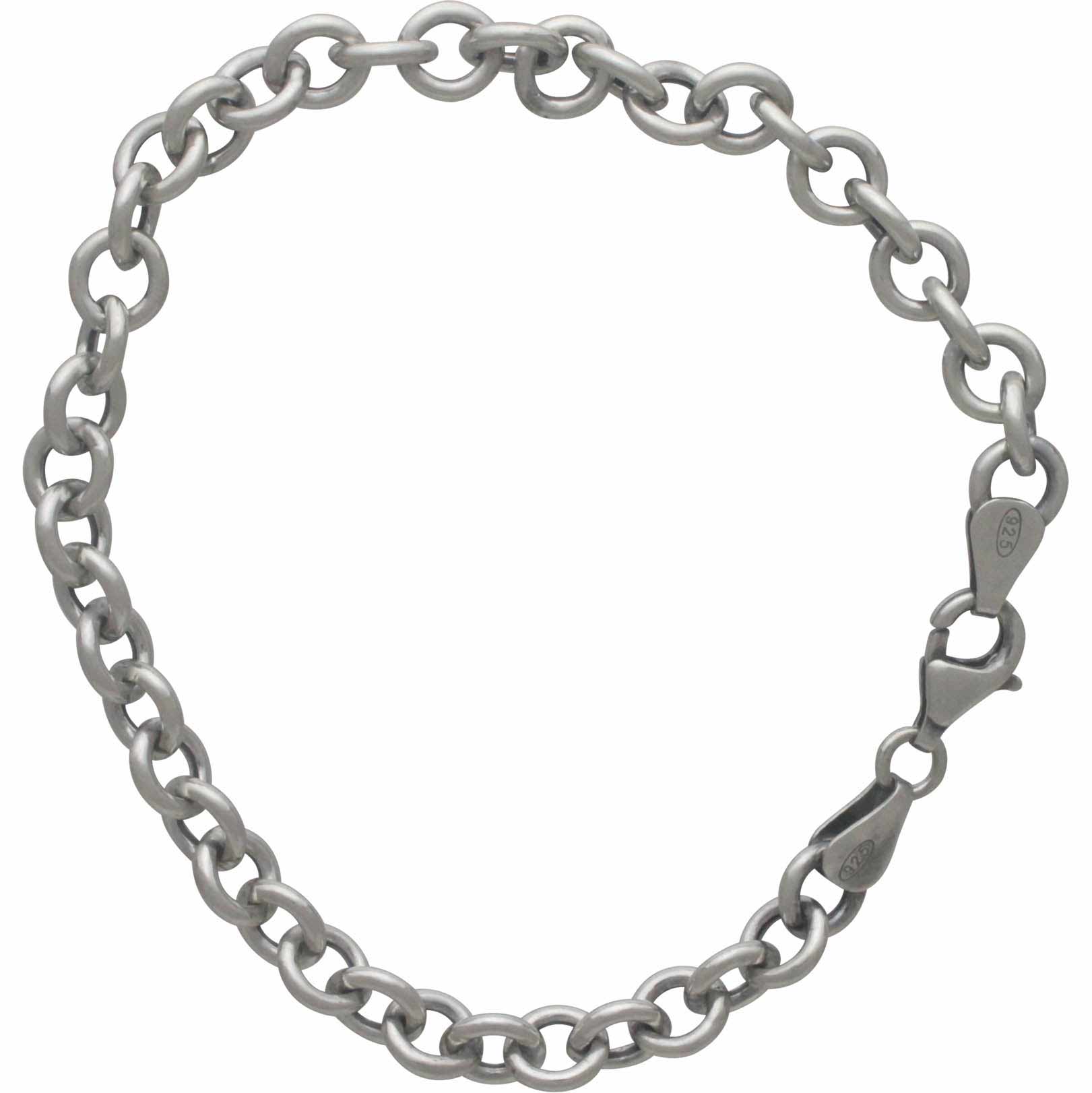 This silver bracelet measures 7.5 inches and is made with hollow links measuring 6mm in diameter.