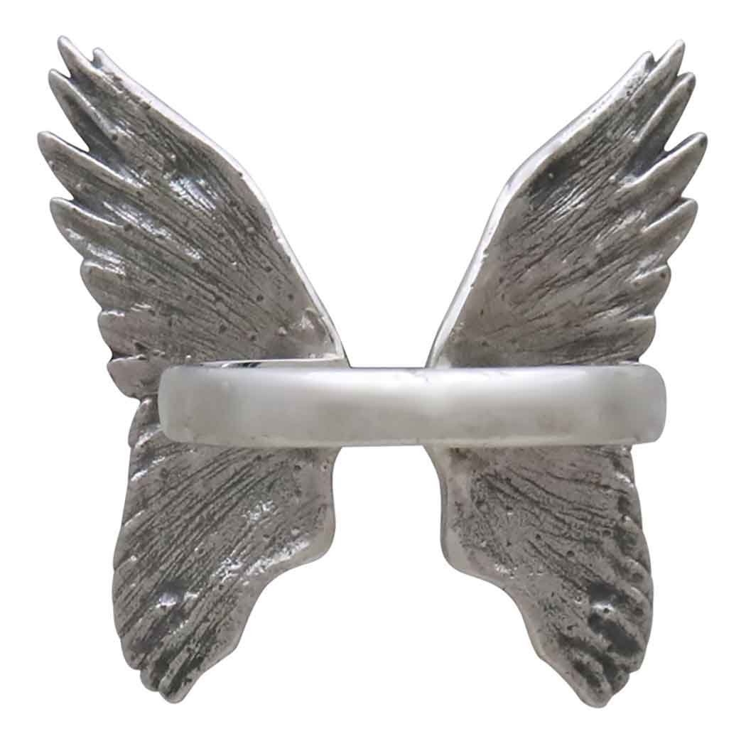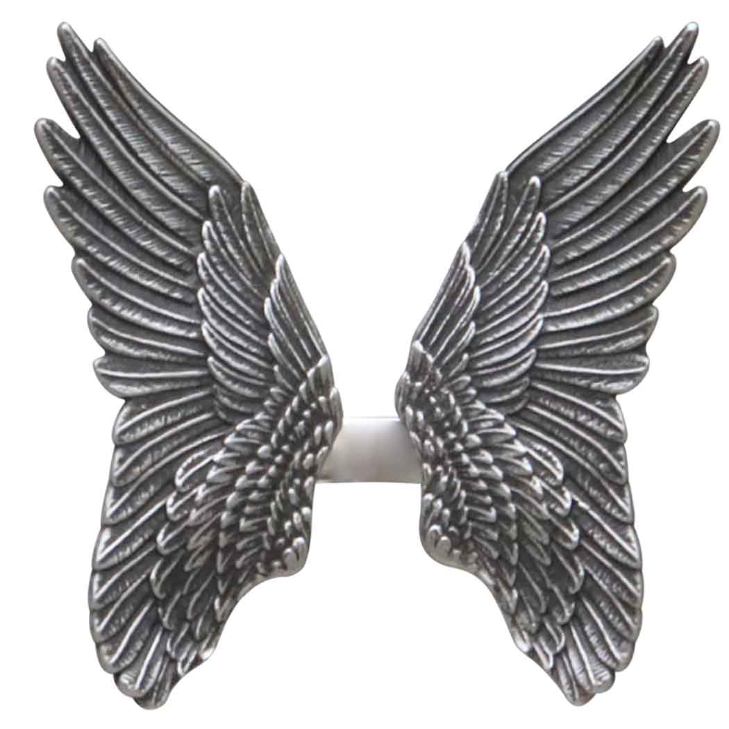 Grasp the beauty of flight in your hands with this exquisite adjustable ring. Crafted in sterling silver, it features two openwork angel wings with meticulous detail. The angel wings symbolize protection, guidance, and hope, making this ring not only a beautiful accessory but also a meaningful gift for someone special. Whether you're dressing up for a special occasion or adding a touch of elegance to your everyday attire, this ring is sure to draw attention and admiration. Find more Rings to add to your jewelry line.