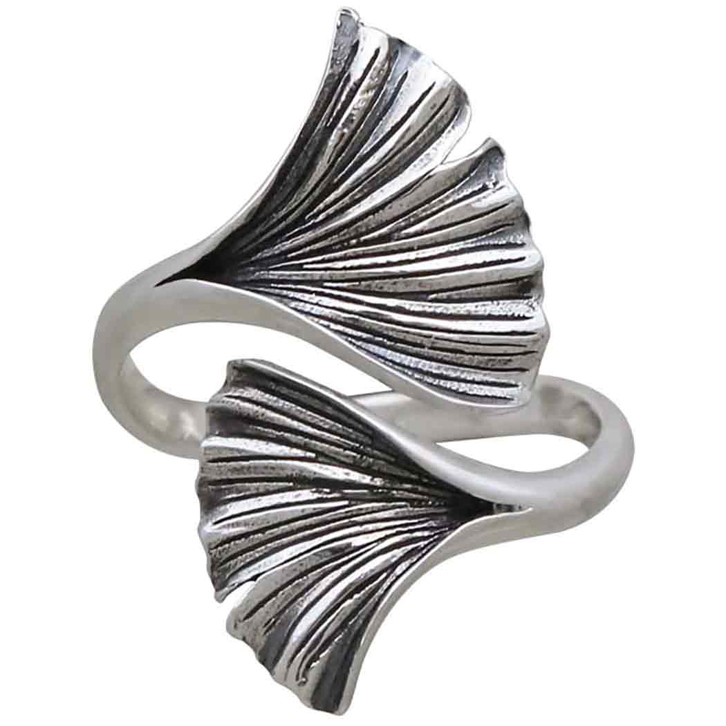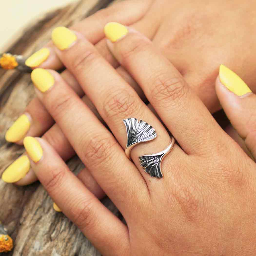 Sterling silver adjustable ginkgo leaf ring highlights the beauty of this well-known leaf with its unique heart shape and delicate veining. Gingko biloba trees are among the most celebrated of trees, and for good reason. Not only are they breathtaking, but gingkos are considered a living fossil, having no known living relatives, and having endured for millions of years with little change. They are the oldest surviving species of tree known to exist, with a history spanning 200 million years. Not surprisingly, it has become a symbol of strength, hope, and peace for many.