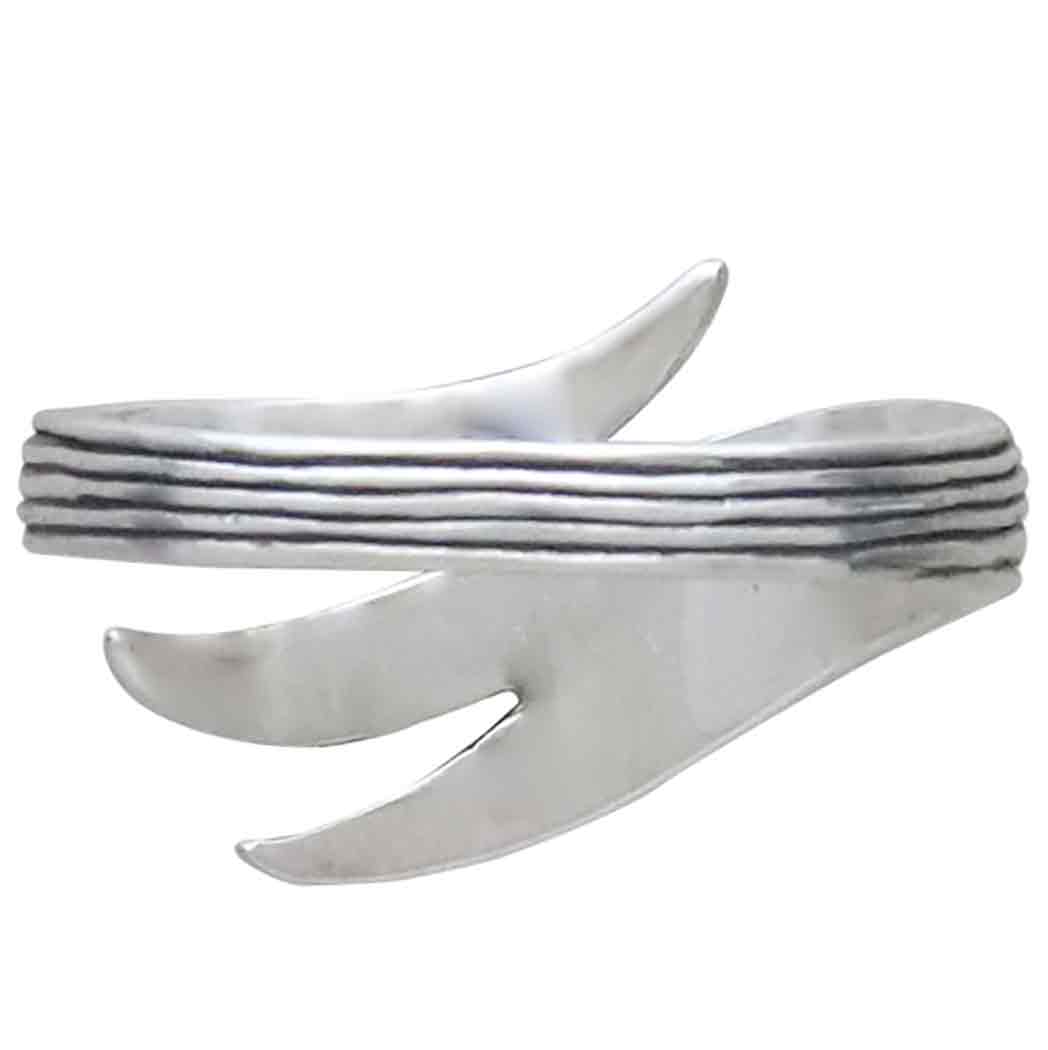 There is much to love about this sterling silver adjustable long leaf ring. The simple yet eloquent details, like the flowing lines creating textured leaves, their gentle curves, and how the three leaves relate to each other, are simply lovely. Wearing this ring is like taking a walk in the garden. How glorious!