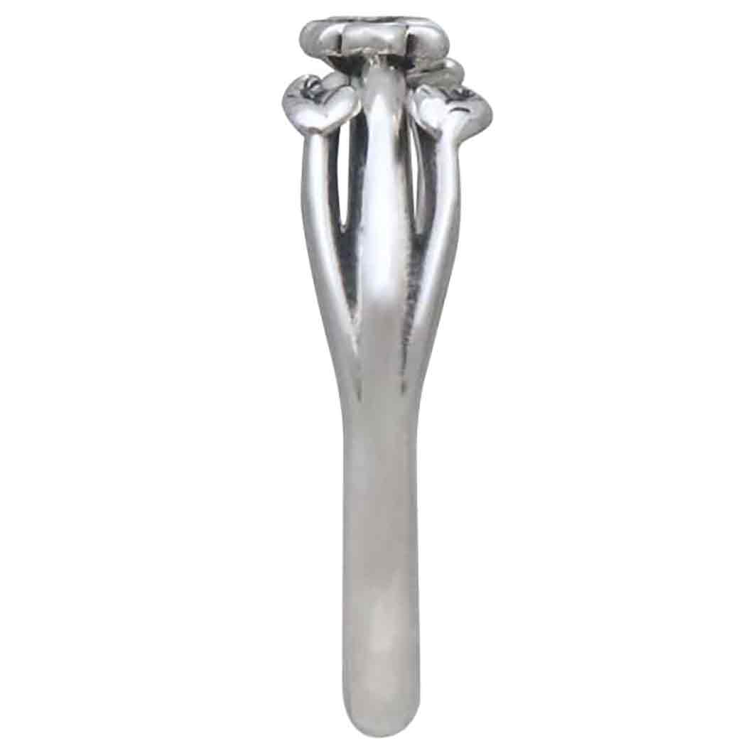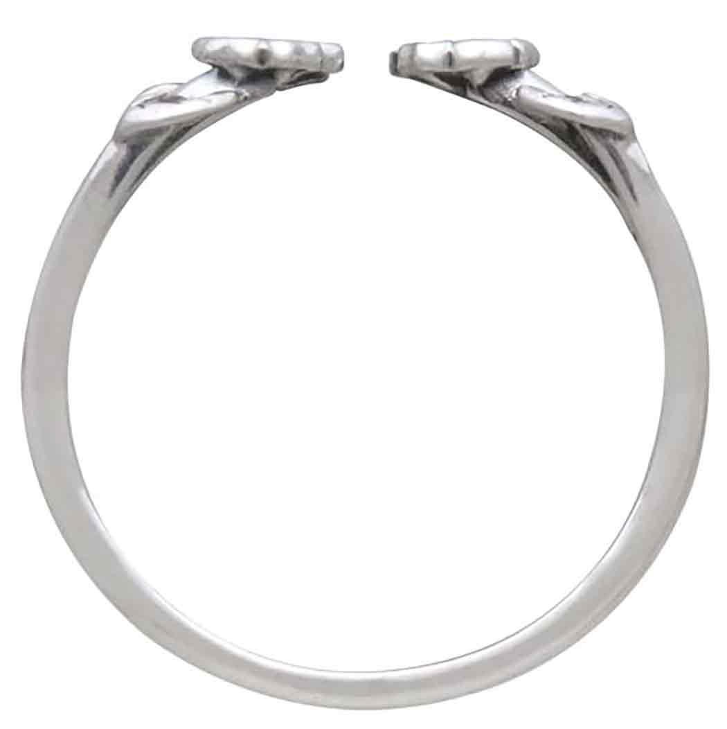 When worn this sterling silver adjustable ring with tiny flowers and leaves creates a flourish any nature lover would appreciate. The graphic blossoms & leaves emerge from the sides of the finger as if they just popped up there to brighten up your day!