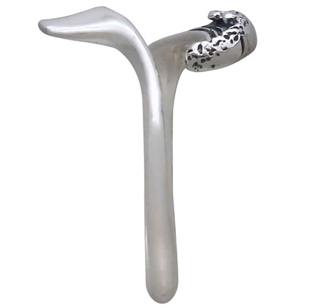 This Sterling Silver Adjustable Wave and Whale Tail Ring will remind you of whale watching and catching the graceful tail of a whale gliding through the salty waters. Whales are great navigators, and are very communicative, always expressing their emotions to one another. This cheerful whale would be perfect for any animal or ocean lover! Or could this be a Mermaid?! See more of our Beach Theme collection!