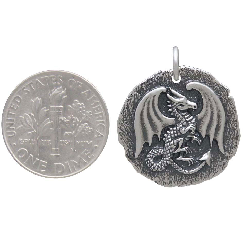 This sterling silver ancient coin charm features a powerful dragon, symbolizing protection, prosperity, wisdom, infinity, and magic. In many cultures, the dragon offers fierce protection, and is guardian of treasures, unlocking potential that lies hidden deep within our unconscious. Like many mythologies, there are four types of dragons, based upon the four elements of fire, air, earth, and water: