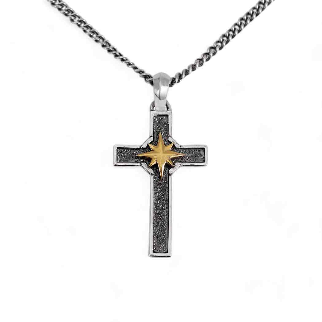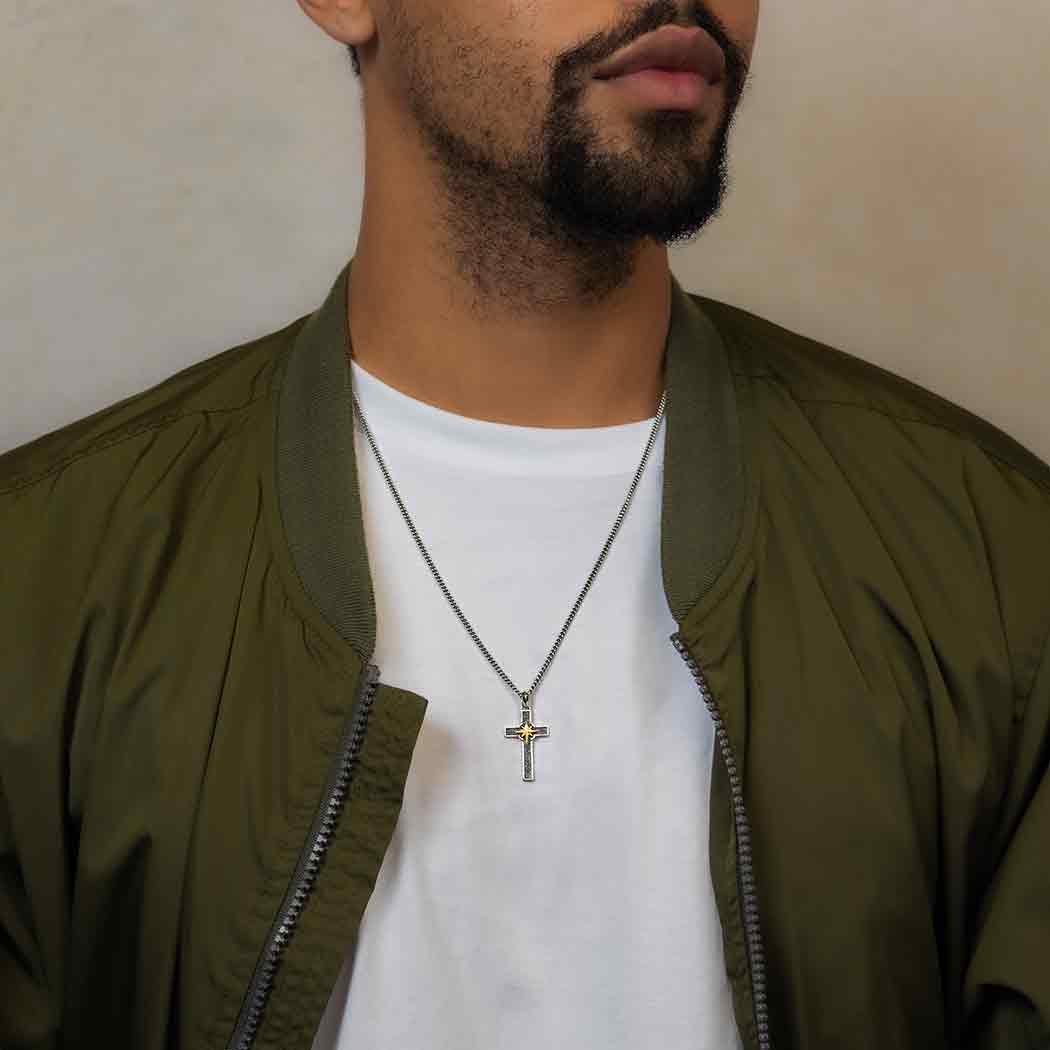 This sterling silver cross with a bronze compass necklace is a striking symbol of faith and guidance. The charm features a sleek, polished cross, accented with a beautifully detailed compass rose in bronze at its center. The contrast between the cool silver and warm bronze adds depth and visual interest, while the compass symbolizes direction, purpose, and a journey guided by faith. Ideal for those who seek inspiration and direction in their spiritual walk. Whether for personal wear or as a thoughtful gift, this necklace embodies the strength of belief and the hope for a clear and purposeful journey through life. Offer this masculine cross necklace in part of your Men’s Jewelry Line. Find more Ready to Wear Jewelry to list on your shop.