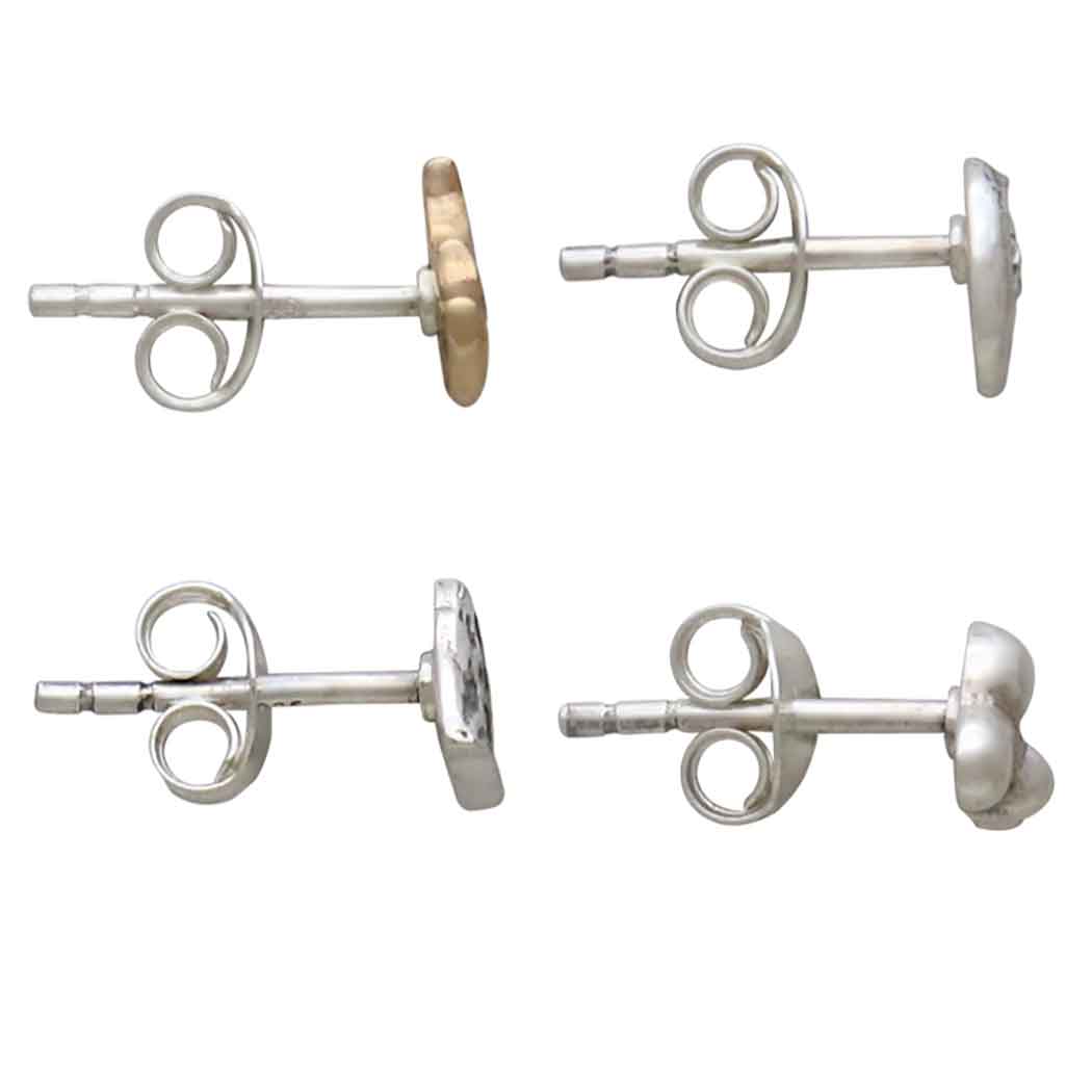 Celebrate the beauty of nature's elements with this striking earring set featuring sterling silver and bronze designs. This set includes a flame, a wave, a mountain and a cloud, each representing a natural force. Perfect for mixing and matching, these petite studs are versatile enough for everyday wear or to make a subtle statement. Whether you're drawn to the symbolism of the elements or simply adore their aesthetic charm, this set offers a meaningful addition to your jewelry collection. Find more post earrings to round out your jewelry line. See our measurement guide.