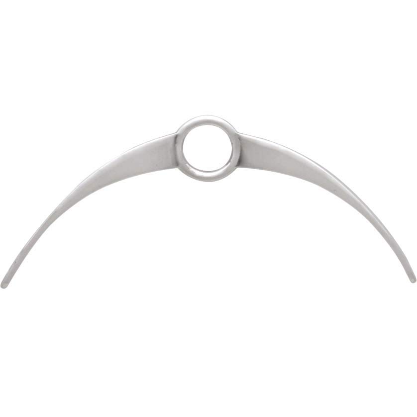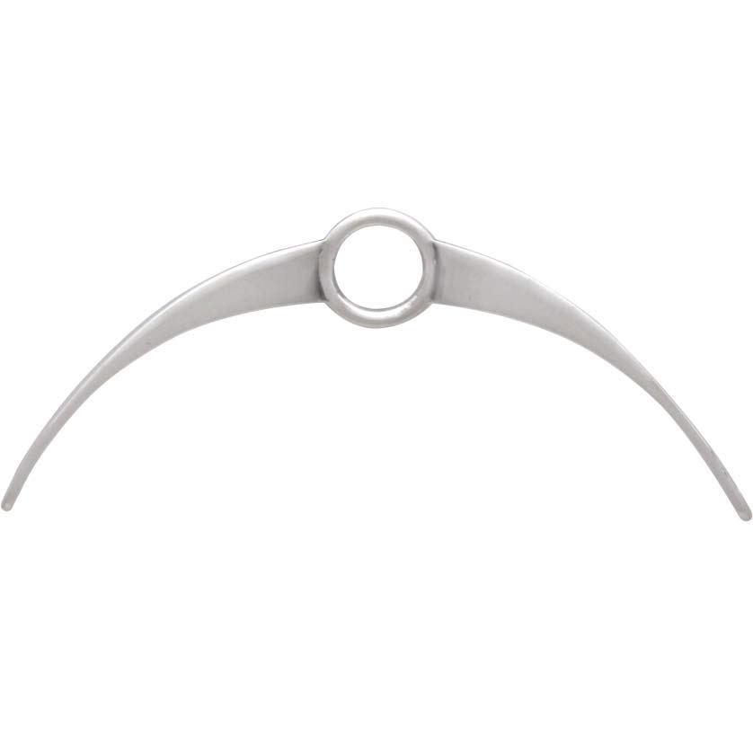 Created to spark your imagination, this sterling silver arch link with circle in the center offers many design possibilities. With three points of connection, this arch link can be used in either direction (with large circle at top or bottom), and would look equally fabulous on earrings or necklaces. Use this piece to highlight a single focal bead or charm, or use it as a base to build chandelier-like earrings. Once you get this piece in your hands, you'll likely come up with many creative designs.