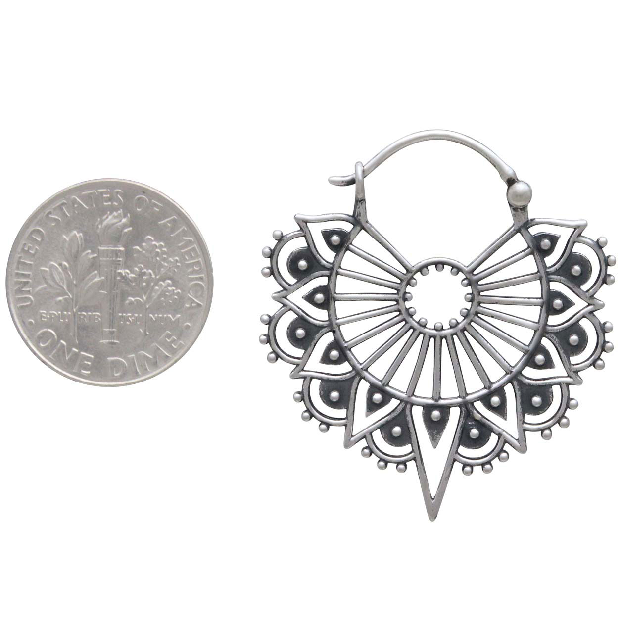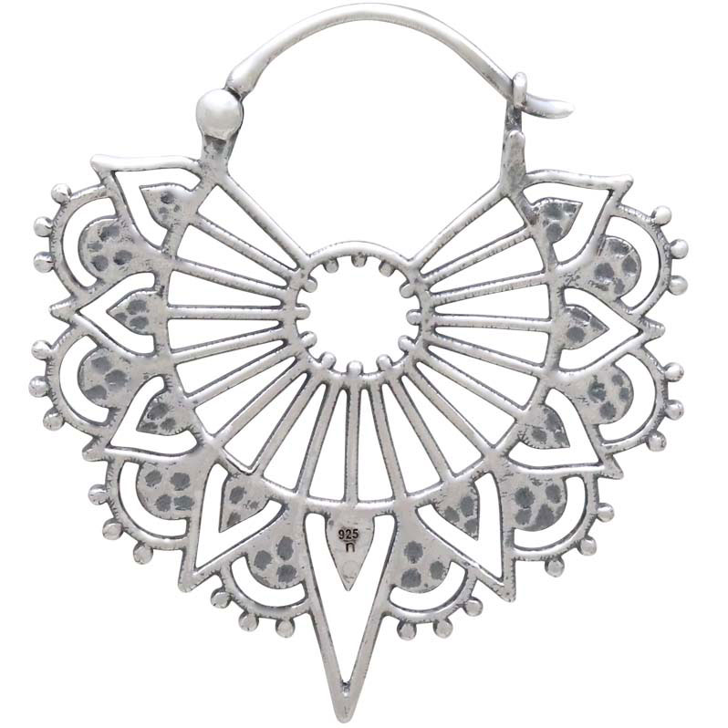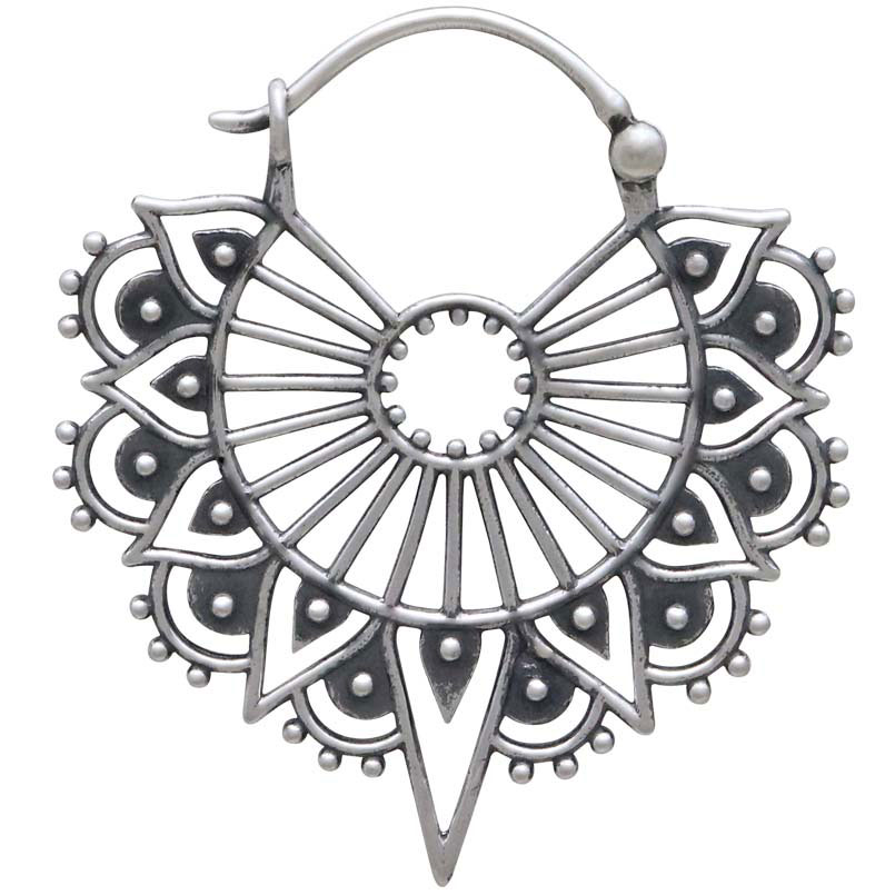 A study in meditation, these sterling silver art deco hoop earrings satisfy with repeating elements and symmetry. Every silver dot placed just so, every open space mirroring one another. They're lightweight, graceful, and hard to resist.
