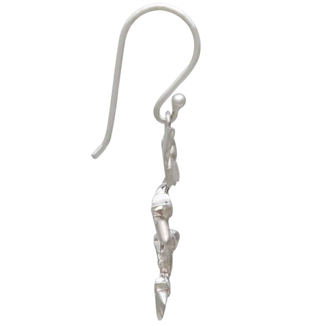 These sterling silver bat cluster dangle earrings have a three-dimensional quality, with graceful wings in mid-flight. Due to their keen senses, bats symbolize intuition, dreams, and visions to many cultures. And, though not known for their charm & hospitality, bats are very nurturing, exhibit verbal communication, touching, and sensitivity to members of their group.