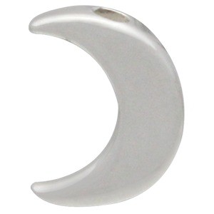 Thread this sterling silver crescent moon bead onto finished chain to make quick necklaces to list in your e-commerce space. Long associated with growth & change, crescent moons have come to symbolize fertility and the illusive, sometimes fickle, nature of love. Aphrodite, the goddess of love, is often adorned with crescent moons. This bead is solid silver and substantial enough that you could stamp letters on it. Discover more in our Star and Moon collection.