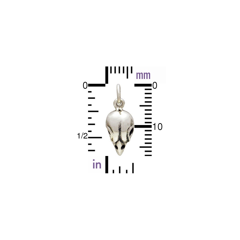 Sterling Silver Sparrow Bird Skull Charm. This bird skull is beautifully detailed, hollow, and designed on all sides. Wear talismanic charms to evoke confidence to soar to new heights, to give you vision when starting something new, and to energize your creativity. Create a cool design by simply stringing this silver skull charm onto silver chain.