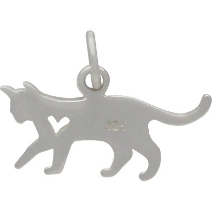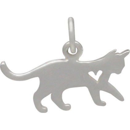Sterling Silver Silhouetted Cat Charm. This adorable little kitten pendant is begging to come home! A sweet kitty, with cut out heart, is just the thing for animal lovers. Adopt this little cat and it will be sure to bring out smiles. Won't you give it a "forever home?" Pair with more Animals from our collection or browse our Pet Lovers theme.