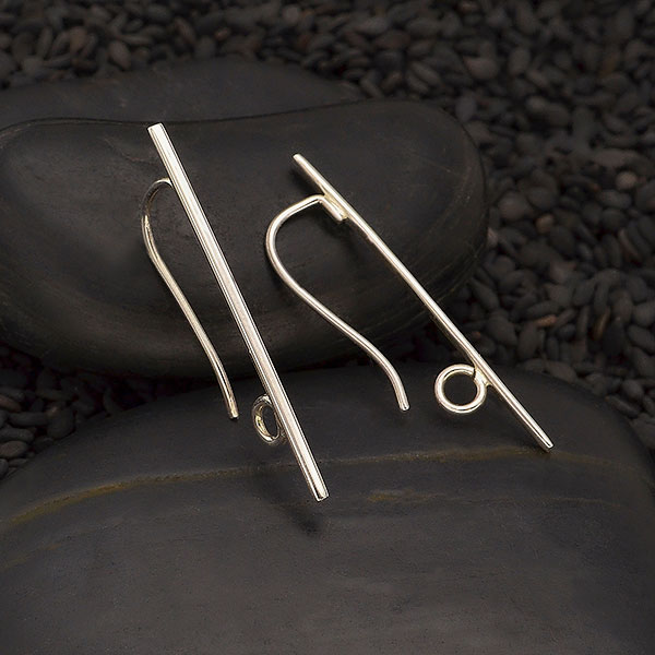 Designing modern earrings with simple, pleasing lines will be a breeze with these sterling silver center line hook earrings. We've provided a hidden loop that opens - perfect for adding gemstones, charms, and links - and sits behind the slender line of silver which is flatter than a round wire, but not hammered completely flat.
