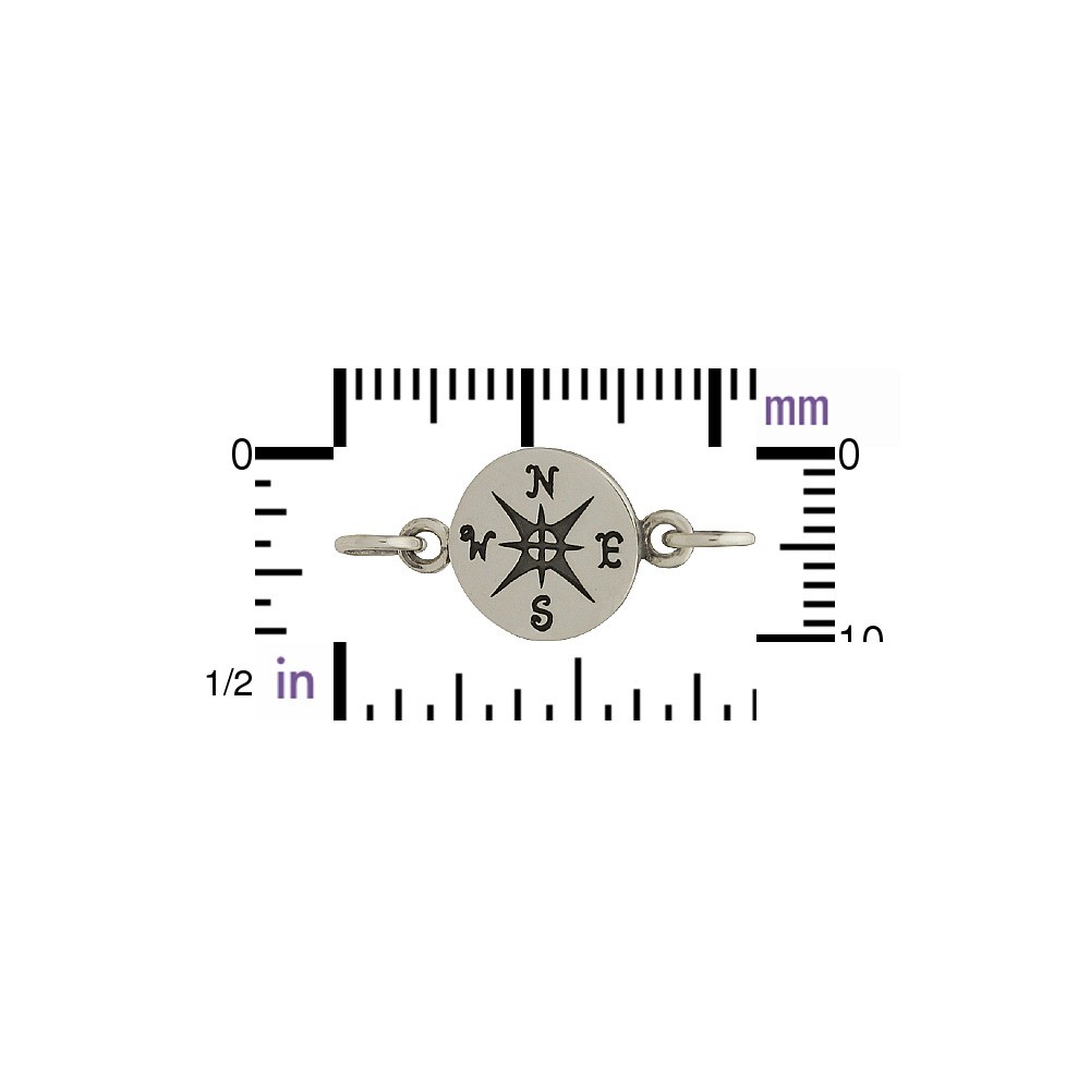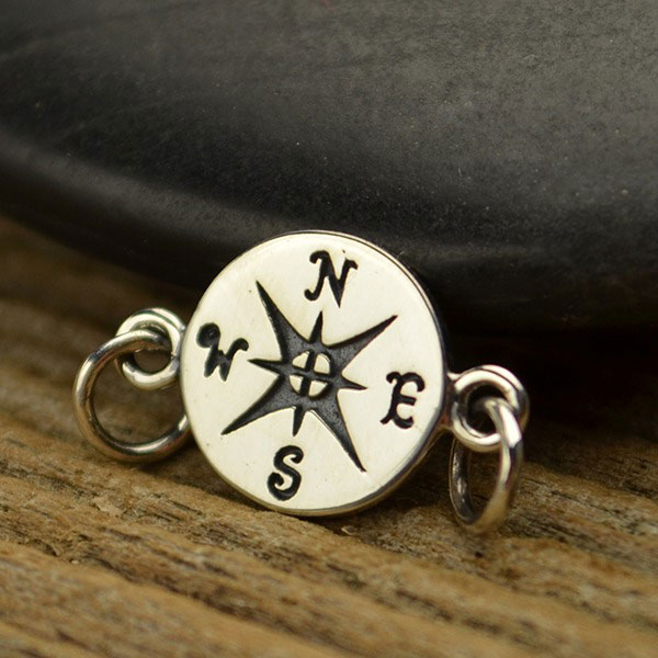 Sterling Silver Compass Link. The compass has long been hailed as a romantic instrument of the high seas, used to indicate the direction of the changing winds. Whether the imagery brings up pirates or the Royal Navy, the compass has a multitude of design uses: graduation jewelry to Steampunk.