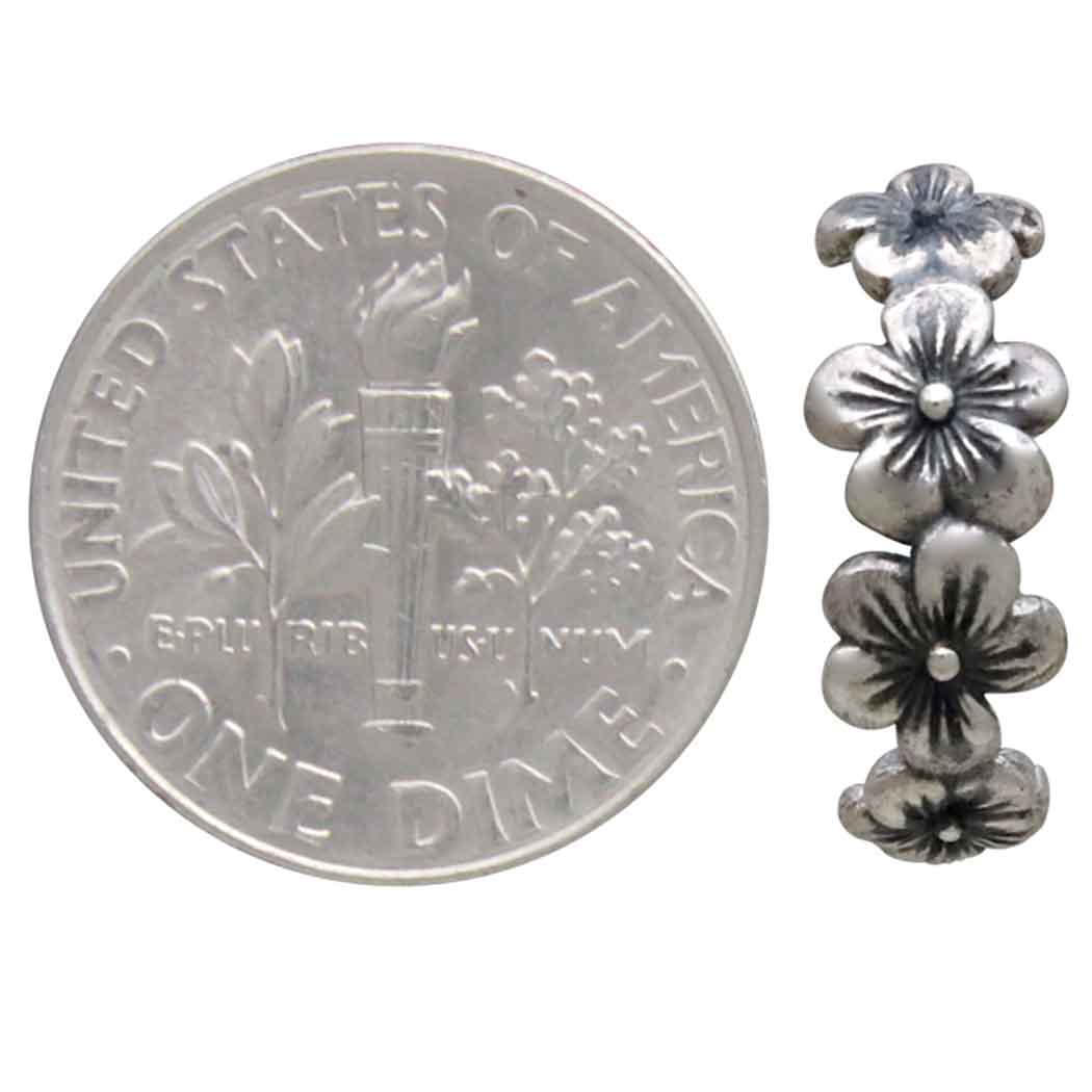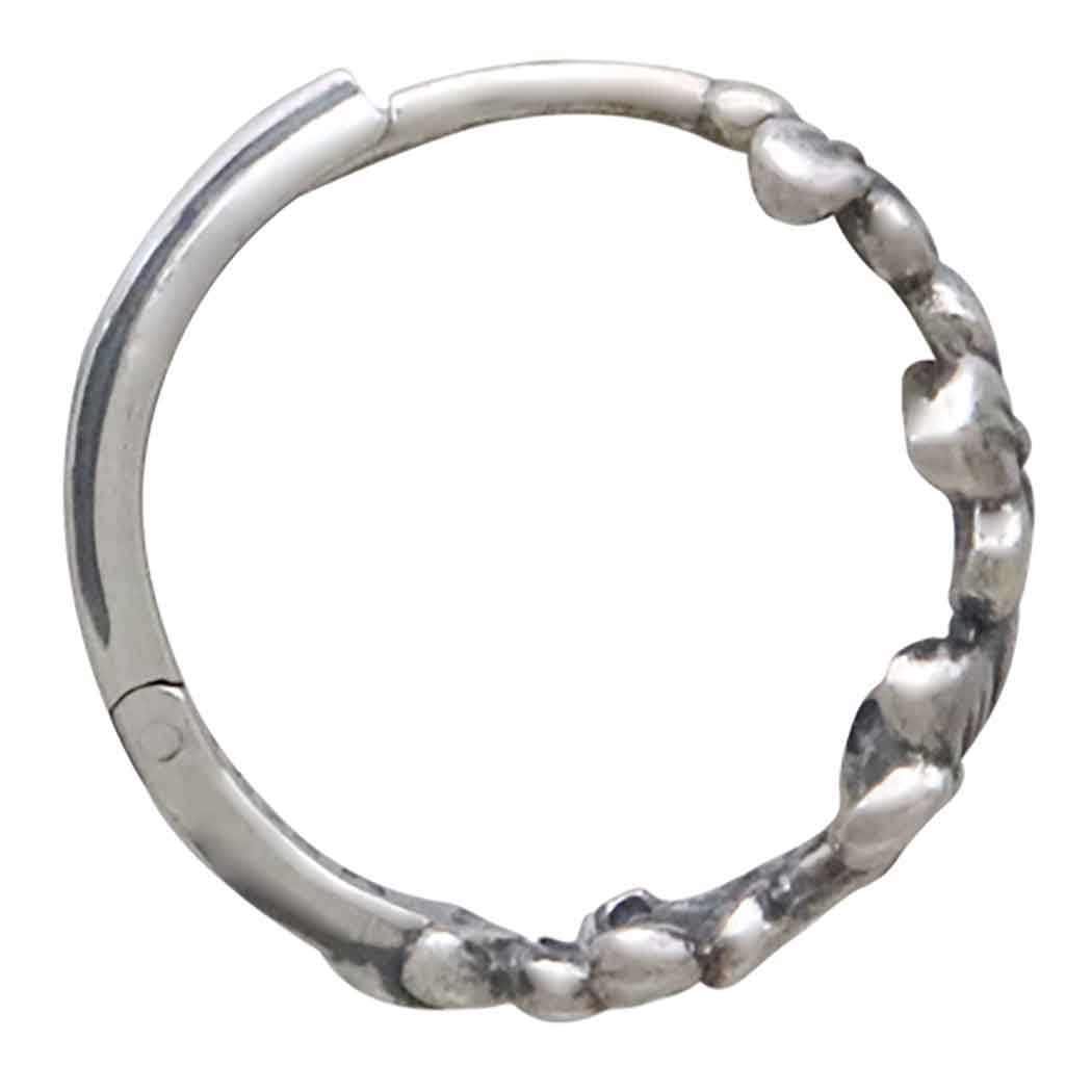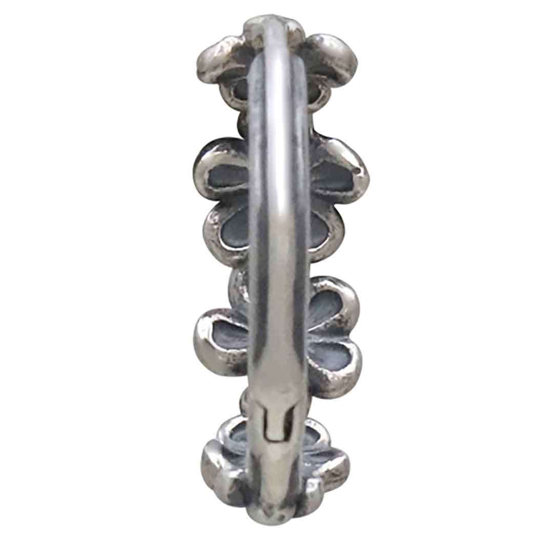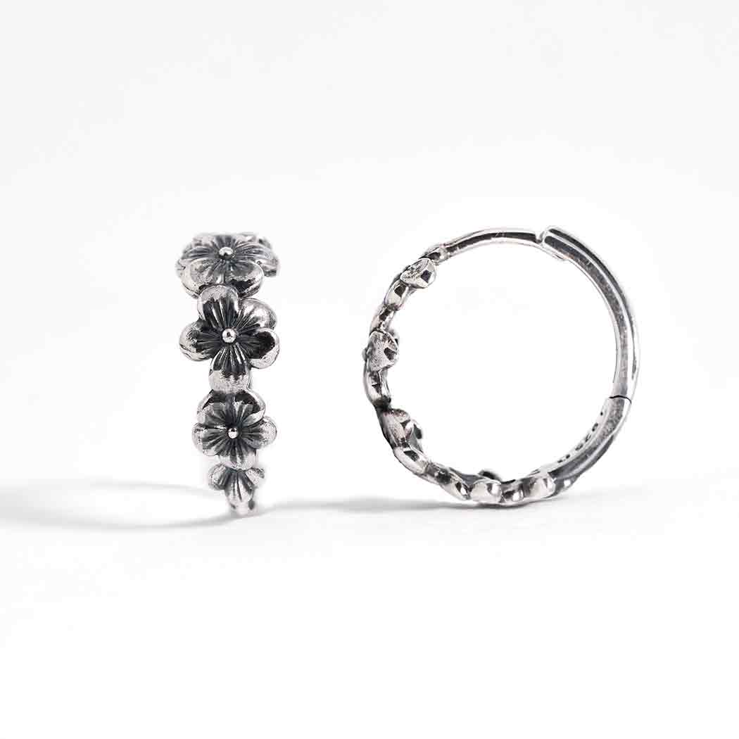 Add these sweet sterling silver cherry blossom huggie hoops to your jewelry line to keep its beauty always in sight. These charming huggies feature several delicate cherry blossoms that gracefully hugs the earlobe. The secure hinged closure ensures a comfortable fit for all-day wear. For thousands of years, cherry blossoms have been held in the highest esteem in Japan and China. Many artists have immortalized the cherry blossom in paintings, poetry, and embroidery. Because the blossoms last for only a short time each year, they're thought to reflect the fleeting nature of life that imbues it with a fragile beauty.