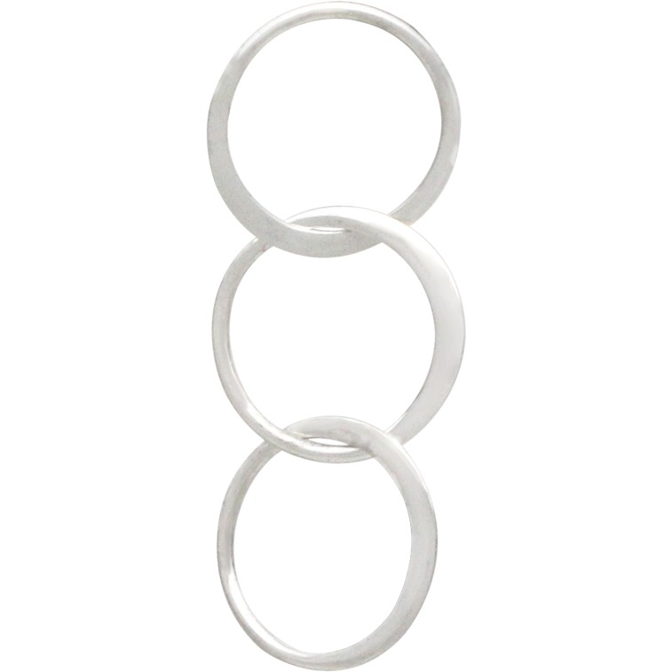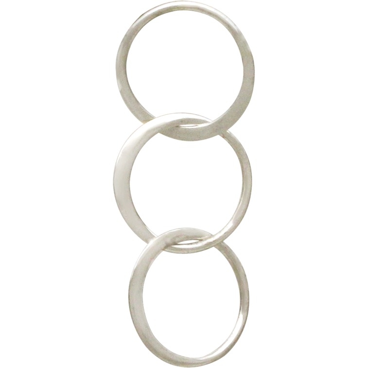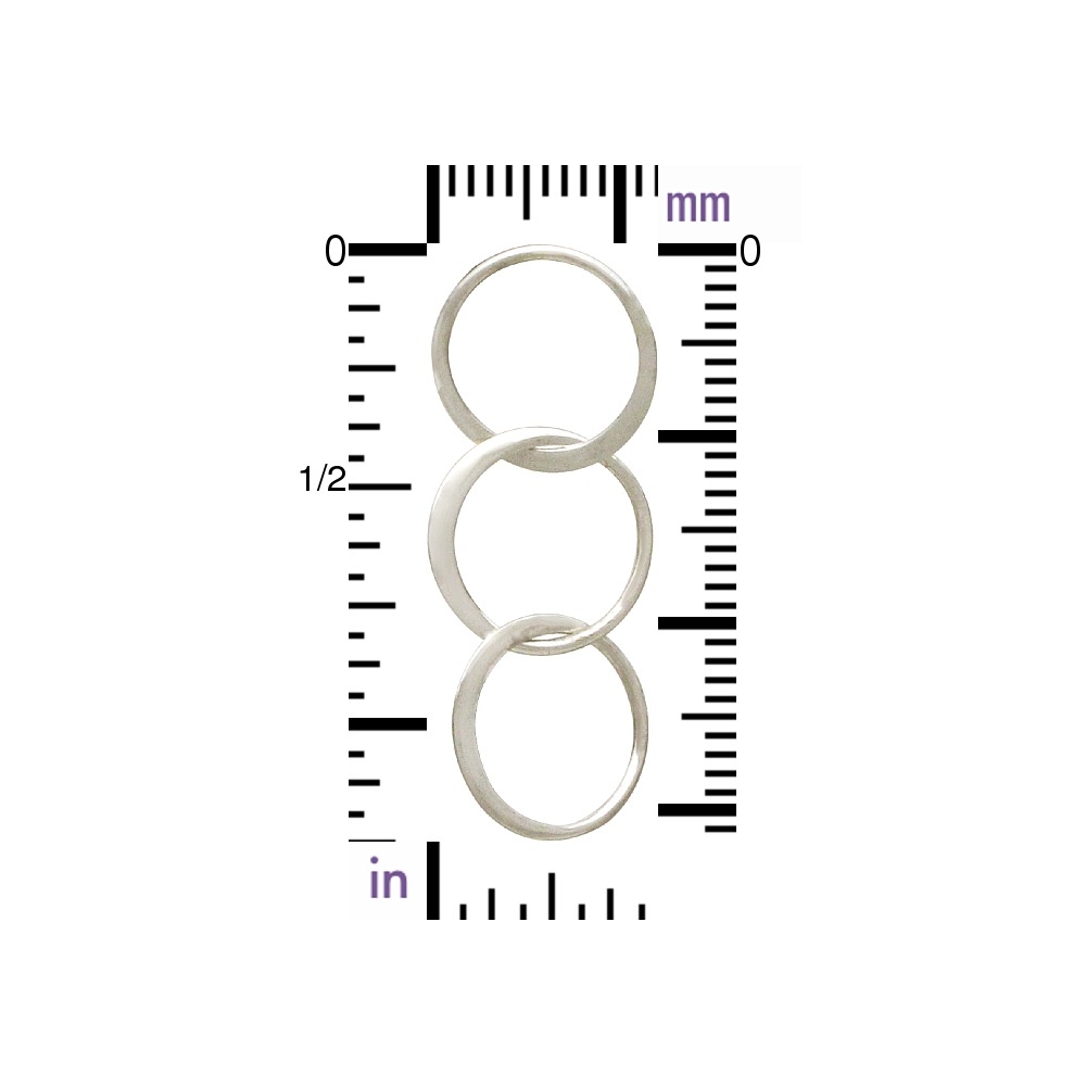 Sterling Silver Circle Link Chain Segment. This lovely design incorporates three circles linked together. One side of each circle is rounded while the other has a flattened edge which gives them a modern edgy feel. Use on earrings and as links on necklaces. Even wire wrap gems inside the circles for added flashes of color! Or, browse our Links for other pieces to add to this.