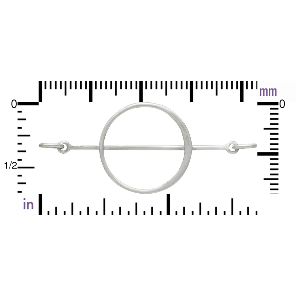 Sterling Silver Circle with Bar Link. This festoon is a unique canvas for inspiring one of a kind designs! Use this fascinating connector to create a centerpiece that has a modern, structured look. Link it to other geometric shapes or suspend pieces of chain and gemstones. This piece is extremely versatile and perfectly fits the trend of geometric and linear jewelry designs. Let your creativity guide you! For more inspiration, check out our other modern abstract designs!