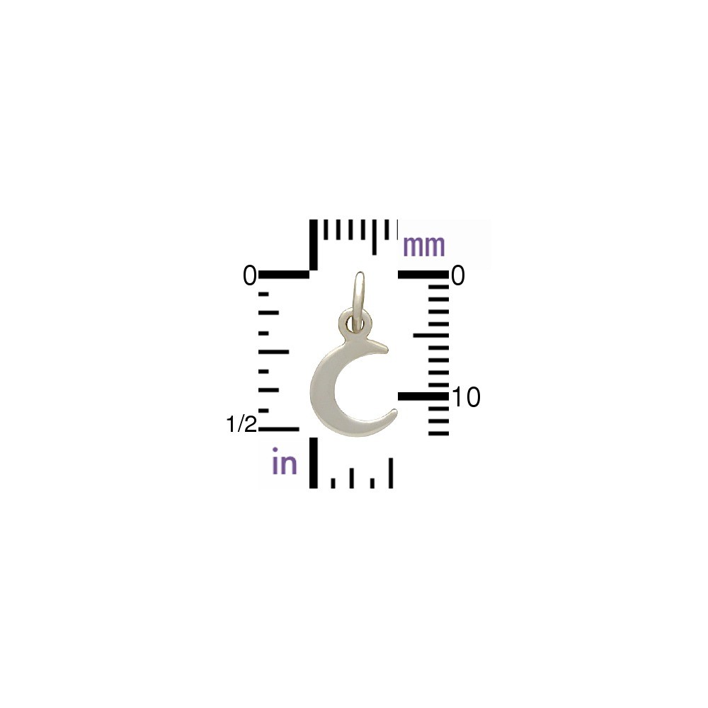 Tiny Sterling Silver Crescent Moon Charm. A beautiful, tiny moon charm to add a mystical touch to your jewelry. Because of its association with and symbolism for growth, the "crescent" became known as a symbol for fertility, and goddesses like Aphrodite are often depicted wearing a hair ornament in the shape of a crescent moon. Create a delicate pair of earrings by attaching these little charms to a pair of Earring Findings or match with other charms from our Star and Moon Collection or from our Mini Charm Collection.