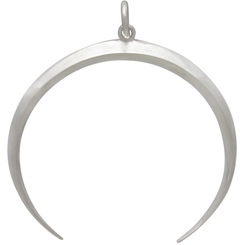 Sterling Silver Crescent Ridged Moon Pendant. A beautiful moon charm adds a mystical touch to your jewelry. A crisp ridge along the center gives this piece extra depth and dimension, reminiscent of the moon on a clear, dark night. Long associated with growth, the crescent moon became a symbol of fertility and femininity; and goddesses, like Aphrodite, are often depicted wearing crescent moon hair ornaments.