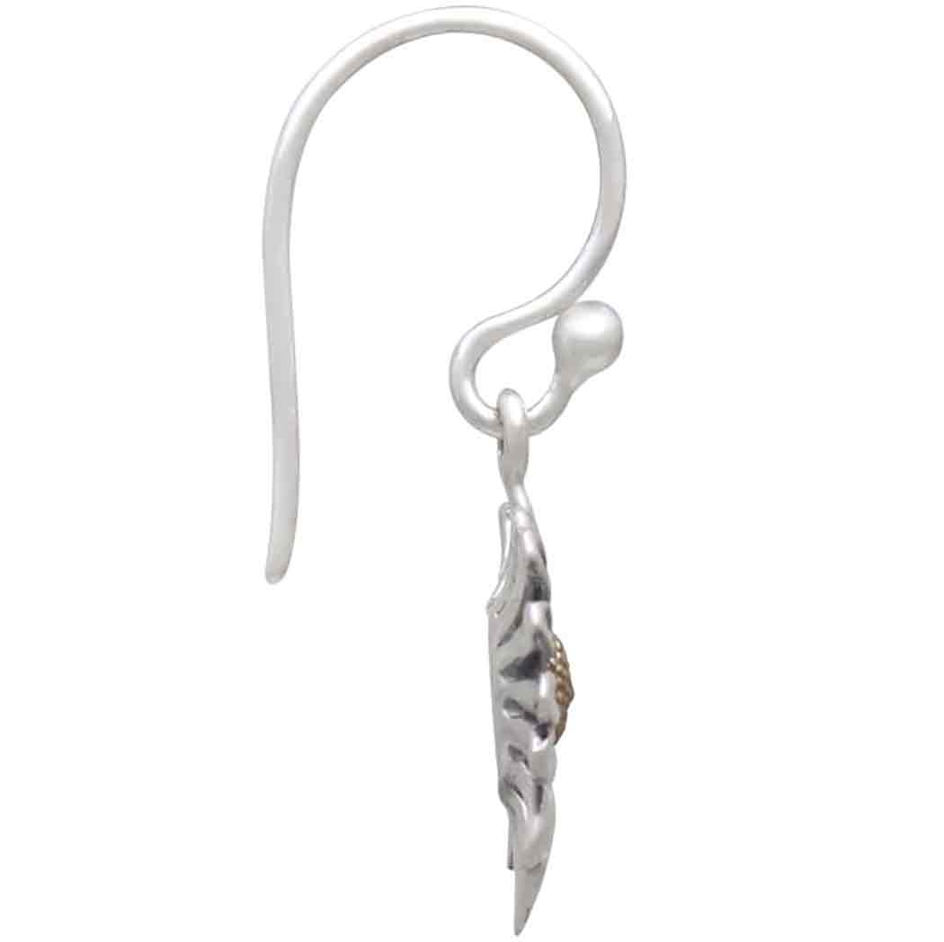 Uplift spirits with these perky sterling silver daisy earrings with bronze center. It's marvelously detailed. Each petal varies in length and is slightly dipped and darkened, adding eye-catching depth; and its center is a warm gold color with dotted texture - just like real daisies. The symbolic meaning of the daisy has a lot to do with purity, positivity, and radiance. Who among us hasn't plucked the petals of a daisy, chanting "(S)he loves me, (s)he loves me not," secretly hoping the last petals reveal, "YES! (S)he loves me!" There is a certain innocence here, like children playing at love, that is associated with daisies.