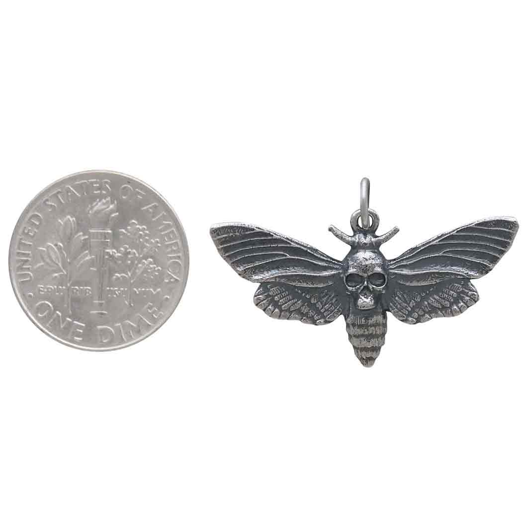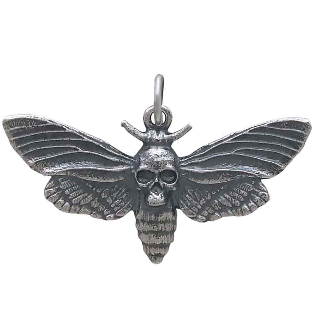 This exquisitely detailed sterling silver death heads moth pendant with skull features a prominent skull between her wings - perfect for flaunting your dark side. Simply thread onto Finished Chain for a quick necklace to list in your shop.
