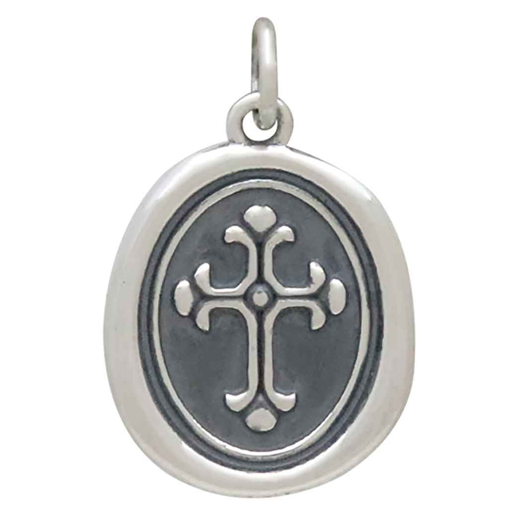 This Sterling Silver Wax Seal Cross Pendant beautifully blends vintage charm with spiritual symbolism. The centerpiece features a delicately embossed cross framed by a dark oxidized background, capturing the timeless elegance of classic wax seal designs. The organic, slightly irregular oval shape adds an artisanal touch, symbolizing individuality and faith.