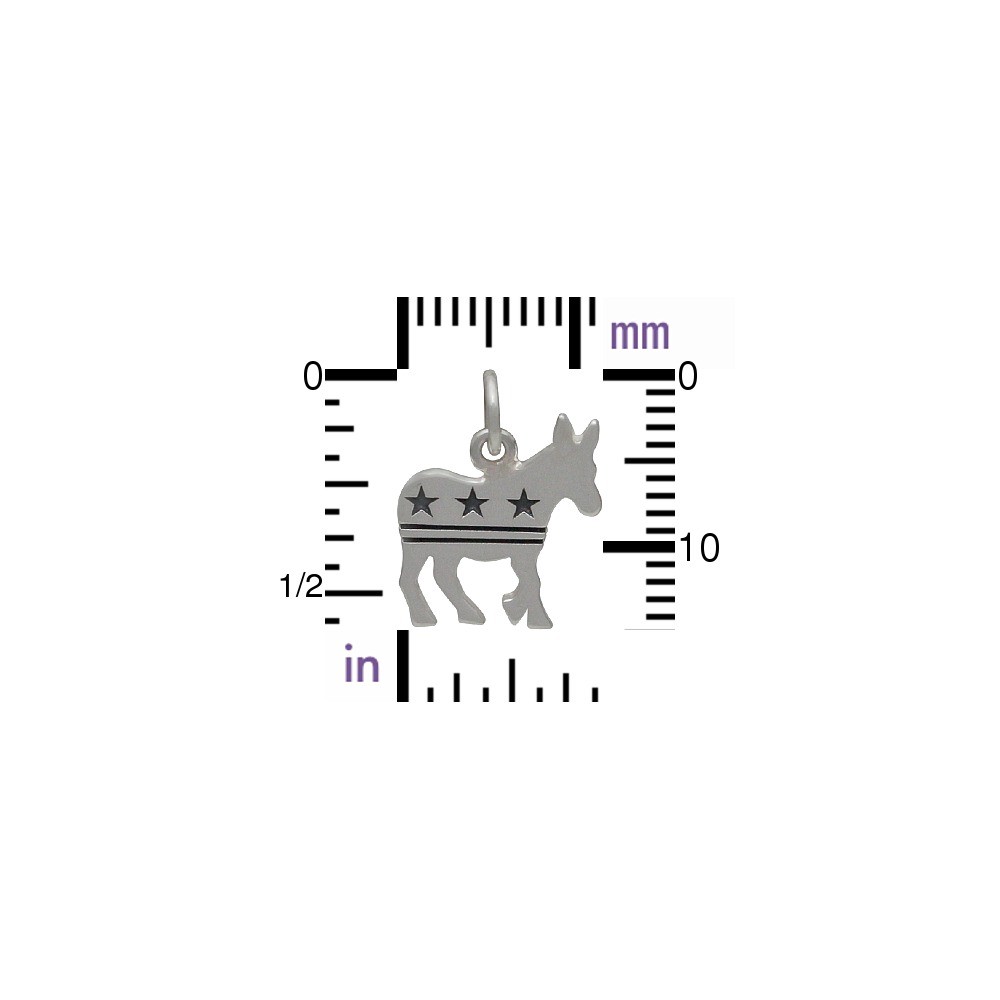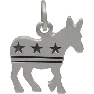 Sterling Silver Democratic Donkey Charm with Stars and Stripes. Show your patriotic pride with this adorable cutout Democratic Donkey charm! Etched with the emblems of our national flag, this pendant makes a great gift for political junkies and proud voters, or a sweet addition to any "keepsake" jewelry collection. The now-famous donkey image was first associated with Democrat Andrew Jackson's 1828 presidential campaign. When faced with the insult of being labeled a "jack ass" by his opponents, President Jackson decided to turn it into an asset by using the image of the strong-willed animal on his campaign posters!