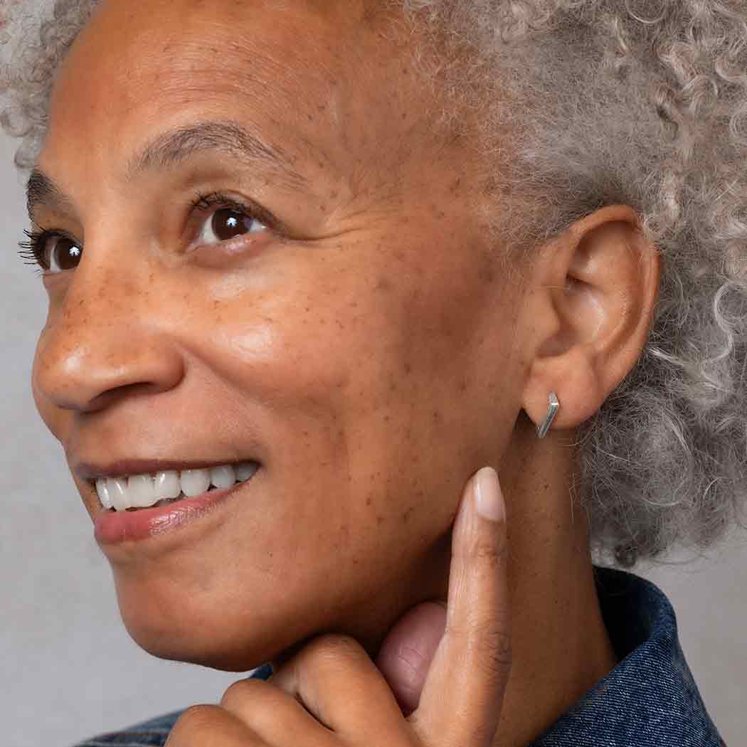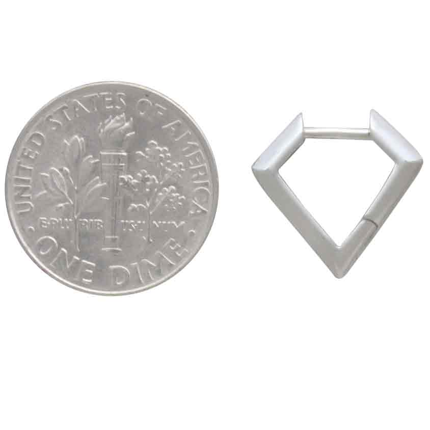 A fierce take on the classic huggie, these sterling silver diamond shaped huggie hoop earrings positively roar!. Their sharp angles and center ridgeline add to the drama and attitude.
