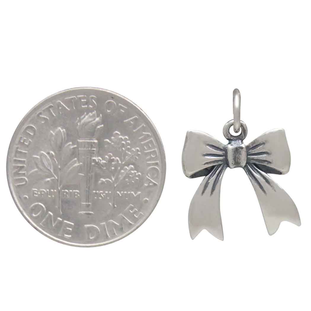 This Sterling Silver Dimensional Bow Charm is a perfect blend of elegance and charm. Featuring a beautifully crafted bow, capturing the essence of grace and femininity. The bow’s polished finish gives it a soft, satin-like sheen, while the intricate details of the bow's loops and knot create a lifelike appearance that adds depth and dimension. String this delicate bow charm onto a finished chain for an easy and sweet necklace.