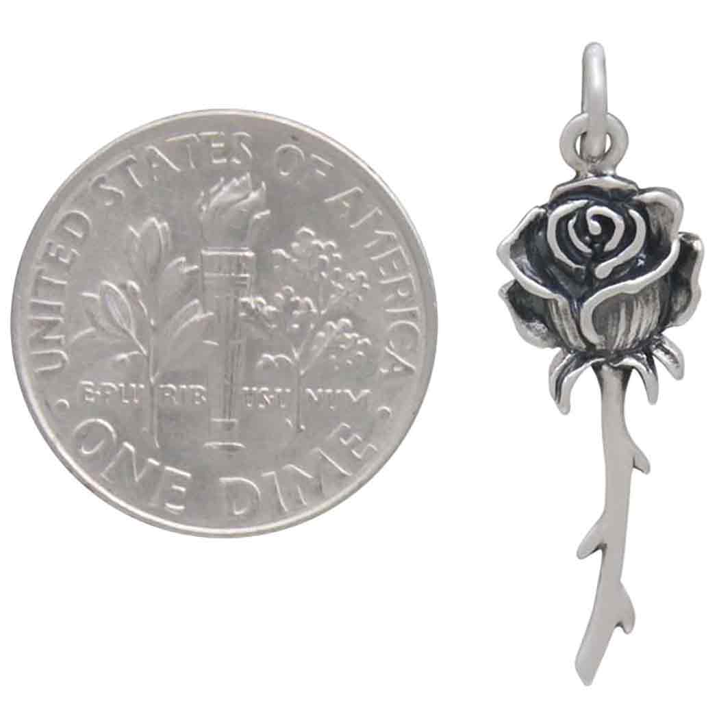 Pair this long stemmed rose charm with Message Charms, Love Charms, and gemstone beads to create gifts for your customers that say "I Love You."