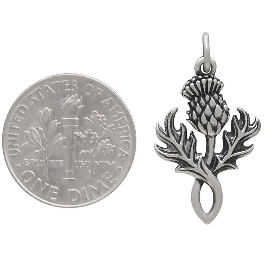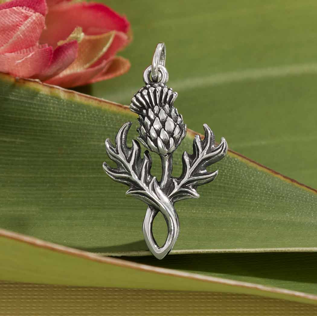 Wear this sterling silver dimensional thistle charm as an amulet of protection. The thistle, nature's prickliest flower, represents overcoming adversity to become resilient and brave, and serves as a reminder that the only thing standing between a beautiful flower and a pesky weed is judgment.