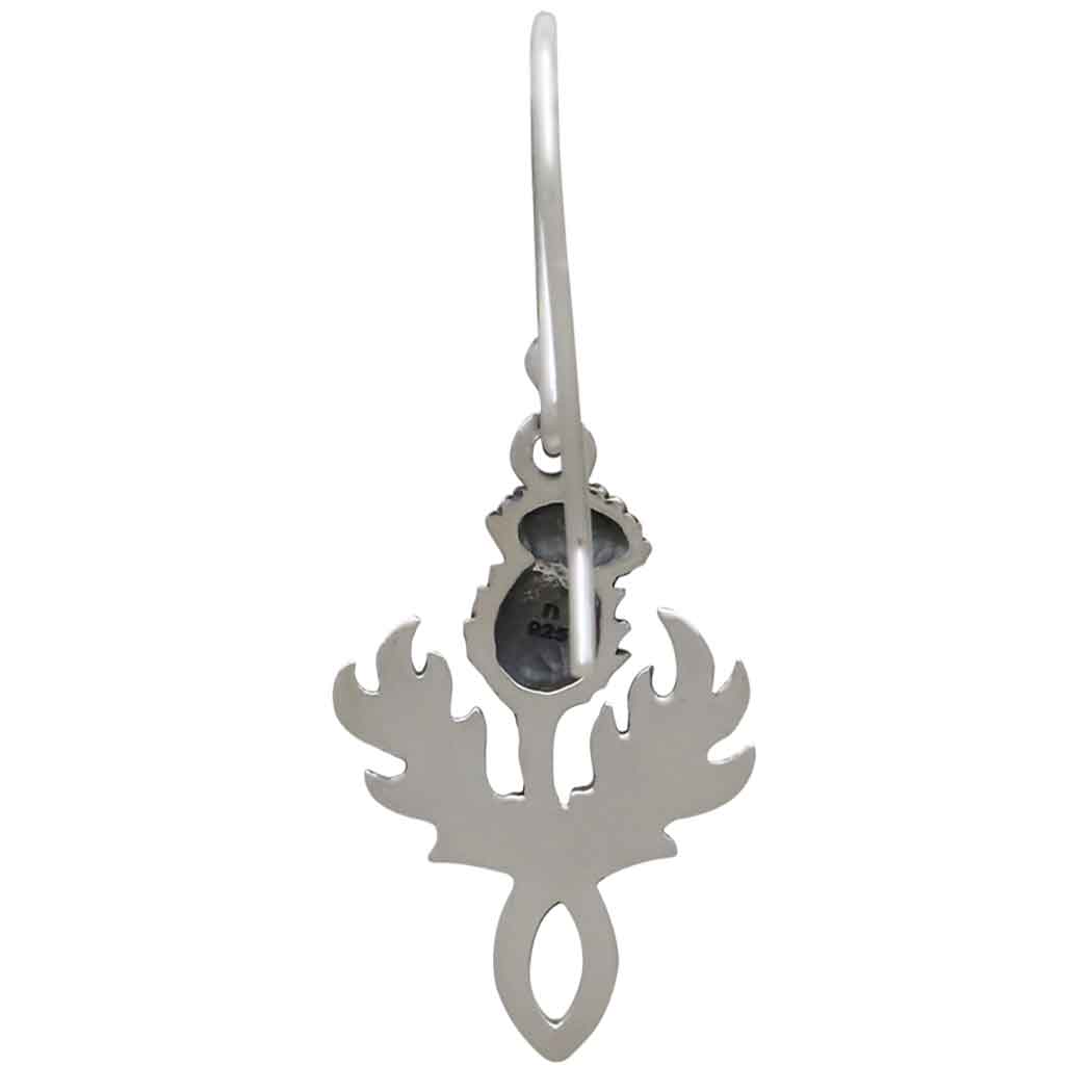 Wear these sterling silver dimensional thistle dangle earrings as an amulet of protection. The thistle, nature's prickliest flower, represents overcoming adversity to become resilient and brave, and serves as a reminder that the only thing standing between a beautiful flower and a pesky weed is judgment.