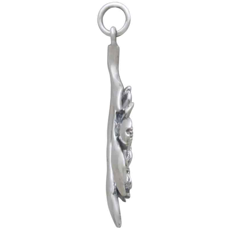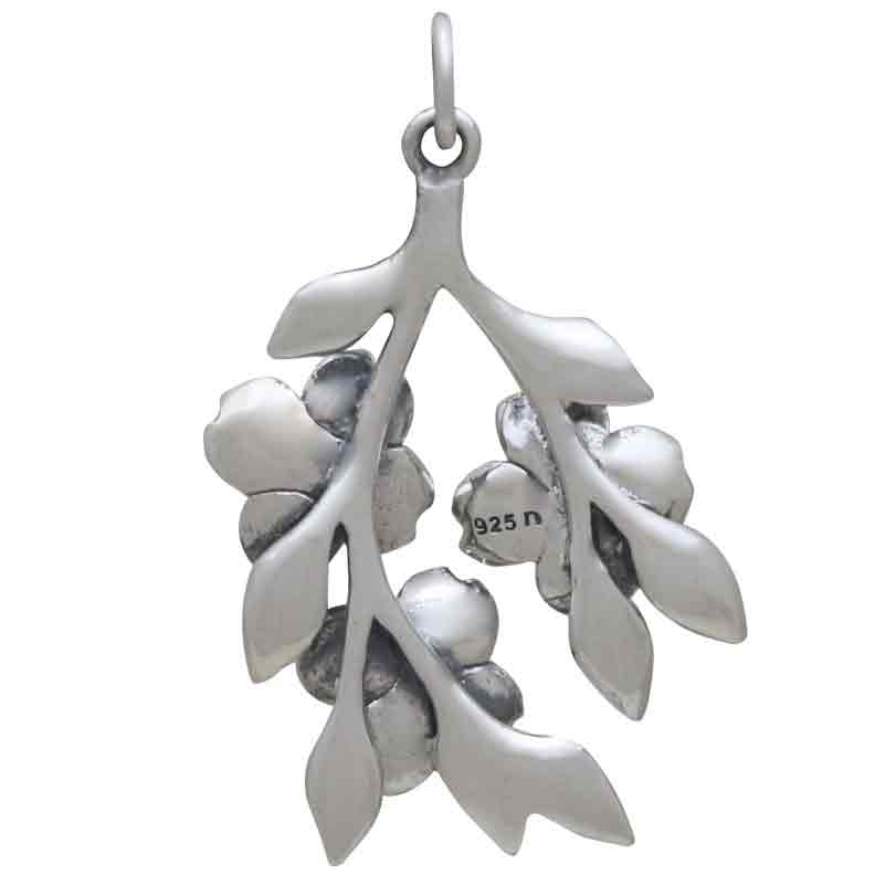 This sterling silver dogwood flowers pendant features three detailed blossoms, layered petals and leaves, all deeply oxidized to add depth and contrast. A beautiful focal point on necklaces and earrings for special occasions, like engagements, Mother's Day, Valentine's, and Easter. In flower symbolism, dogwoods are thought of as sacrifice, strength, rebirth, and purity. Legendary to Christians as the tree used to make the wooden cross, dogwood trees are prized and in full bloom around Easter. The blossom's four petals represent the cross and the center cluster as Jesus' crown of thorns.