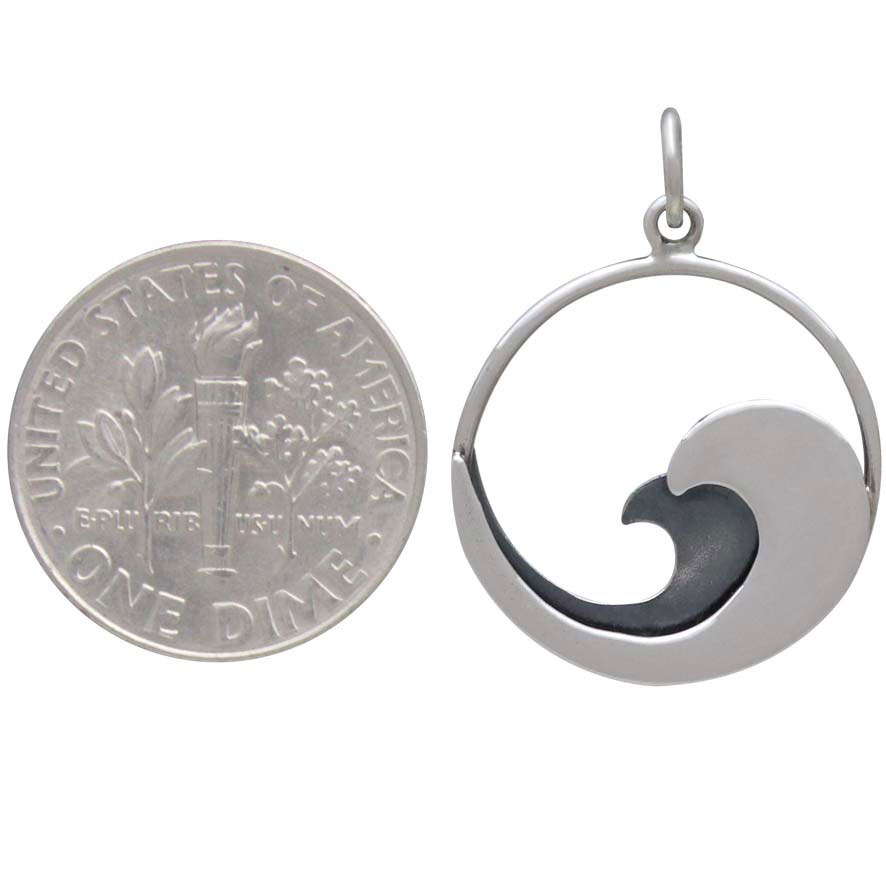 Offer this sterling silver double layer wave charm to your customers who enjoy swimming, surfing, and spending long days exploring beaches and lakefronts. The deeply oxidized wave in the background adds drama and contrast to the perfectly polished wave in the front.