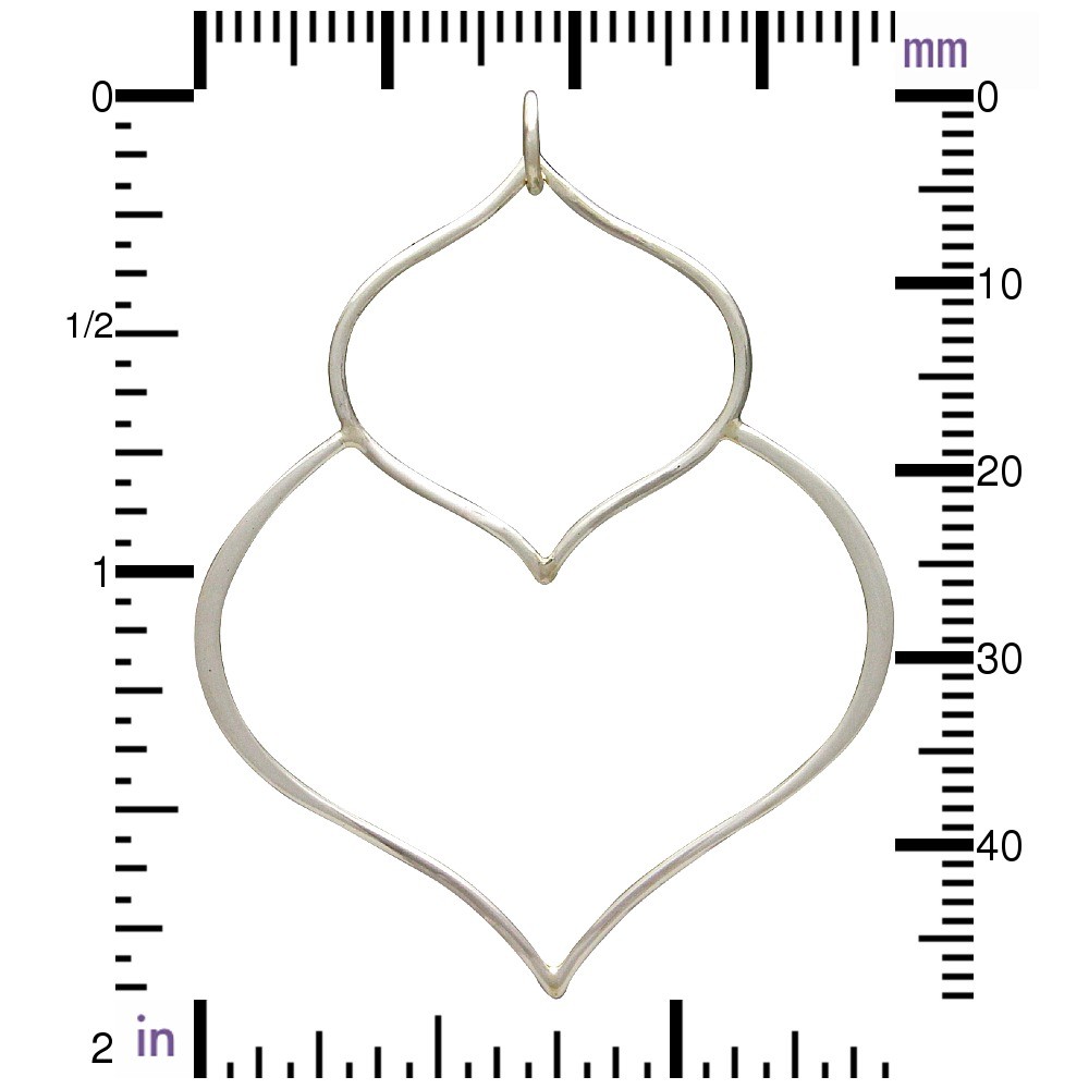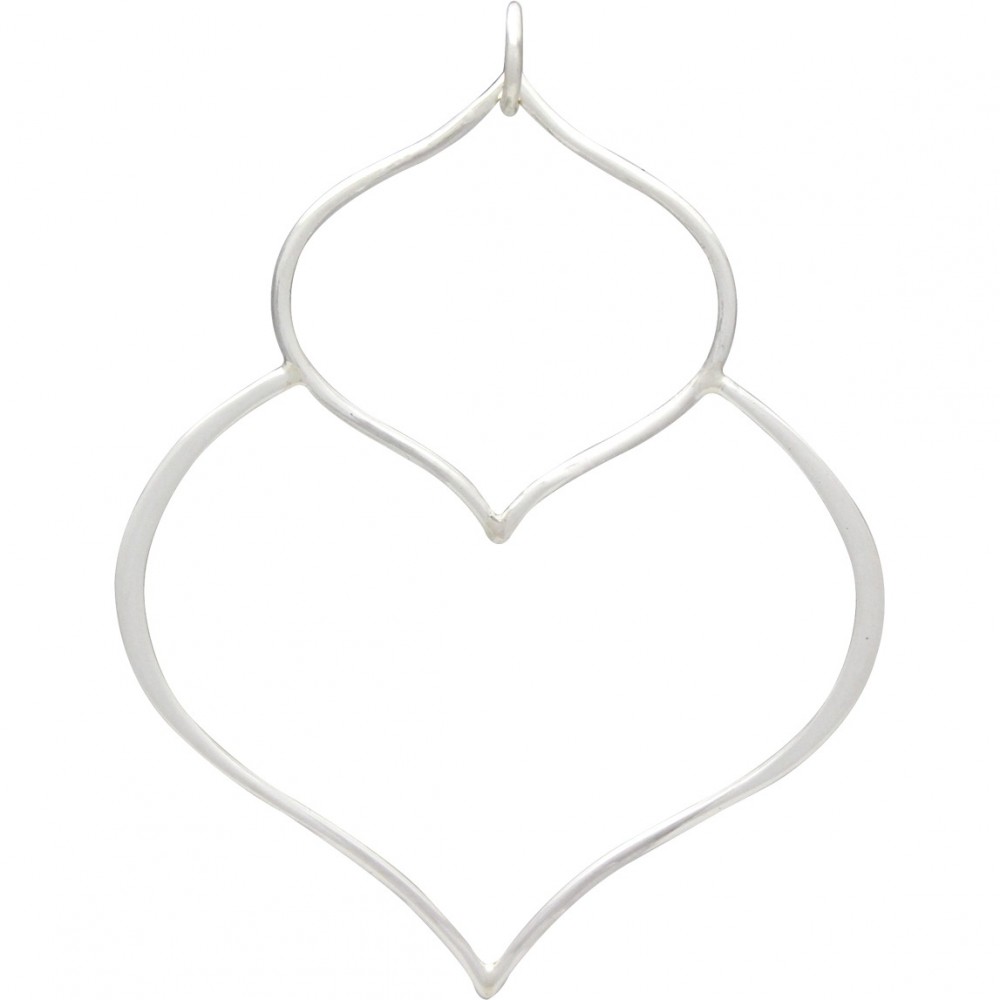 Sterling Silver Double Lotus Petal Pendant. A graceful and delicate wire pendant allows for you to channel your creativity and use this piece in numerous ways. The repeating flower petal design gives this pendant fluidity and curvy lines. With plenty of open space to work with, use this pendant to frame other links or charms, or wire wrap or dangle gemstones for a more elegant look. This piece would make gorgeous and unique earrings! Find more modern abstract pendants.