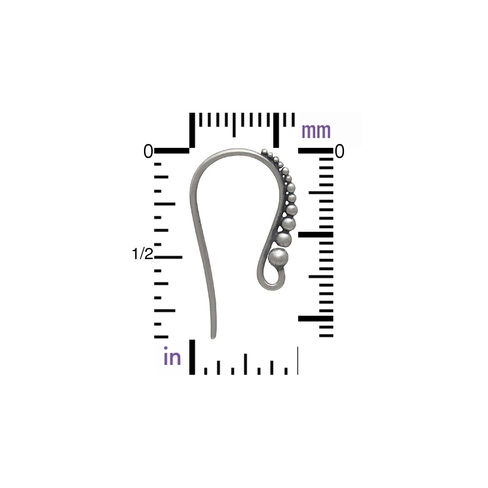 These elegant Sterling Silver Ear Wires are handmade in Bali. Each granulated dot is hand placed. Add a wire wrapped gemstone or charm to complete these earrings! Loop opens at the bottom to allow hanging of beads or charms.