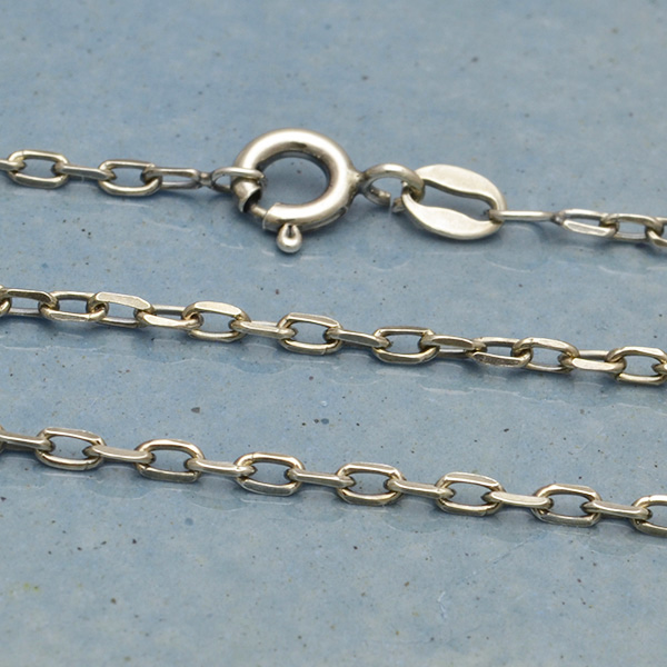 This sterling silver faceted oval chain is perfect for making charm necklaces! This sterling silver finished chain has faceted oval links each measuring approximately 3.5mm x 2mm and is finished with a 6mm Spring Ring Clasp. This sterling silver chain has light oxidation. This silver oval chain sparkles all the way around due to the facets on each link. Simply slide your charm over the chain end and you have a finished necklace! This silver chain is great for larger charms and pendants. Browse our charm collection for inspiration.