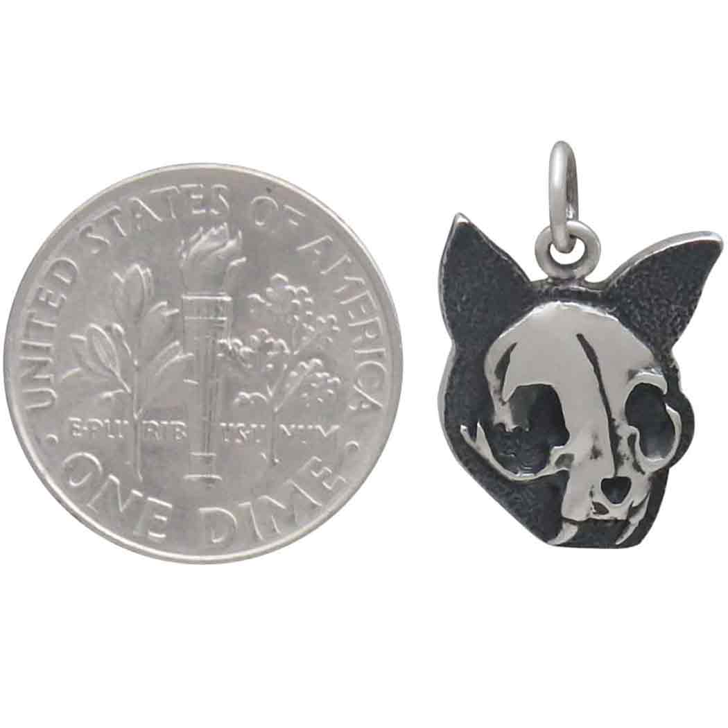 Channel cat power with this wonderfully detailed sterling silver flat cat skull charm complete with kitty ears. Cats, especially black cats, are often associated with witchcraft, darkness, and mysticism, making this cat skull charm the perfect addition to your edgy jewelry designs.