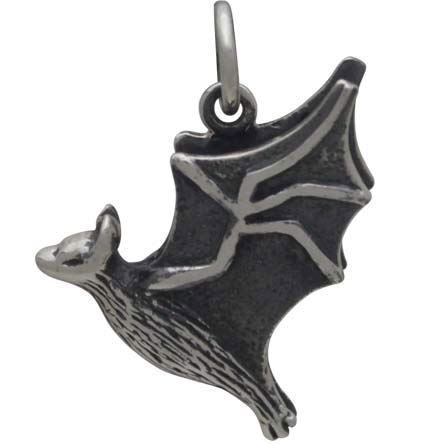 This flying bat charm captures the strength of this amazing creature. With it's wings upright, we see it's wonderful structure, and a body in motion. This bat charm is lovely from all sides. You'll truly appreciate the details from every angle - the tiny ears, the feet, and the space between the wings.
