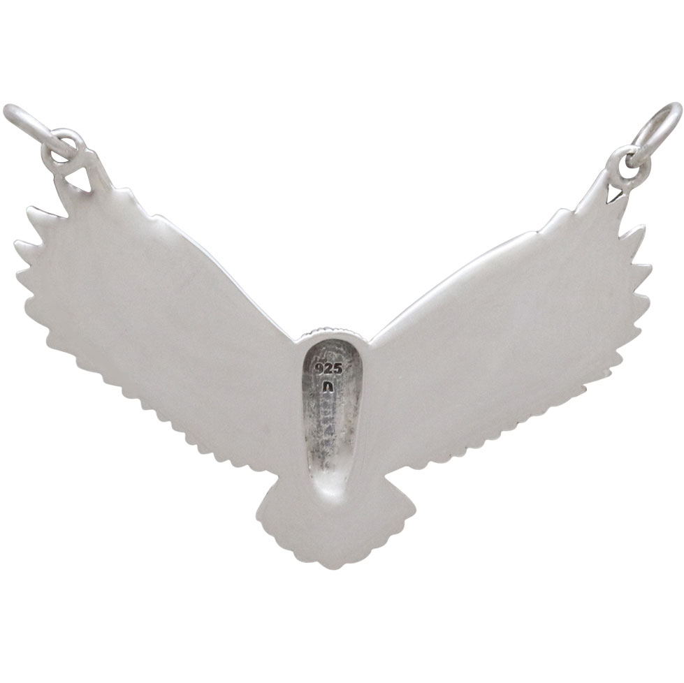 This sterling silver flying owl pendant festoon is full of life! Owls often appear during times of transition to help us move from one realm to the next. In myths and ancient lore, owls are guardians of the underworld, rulers of the night, and seer of souls passing from the physical plane to the spiritual one.