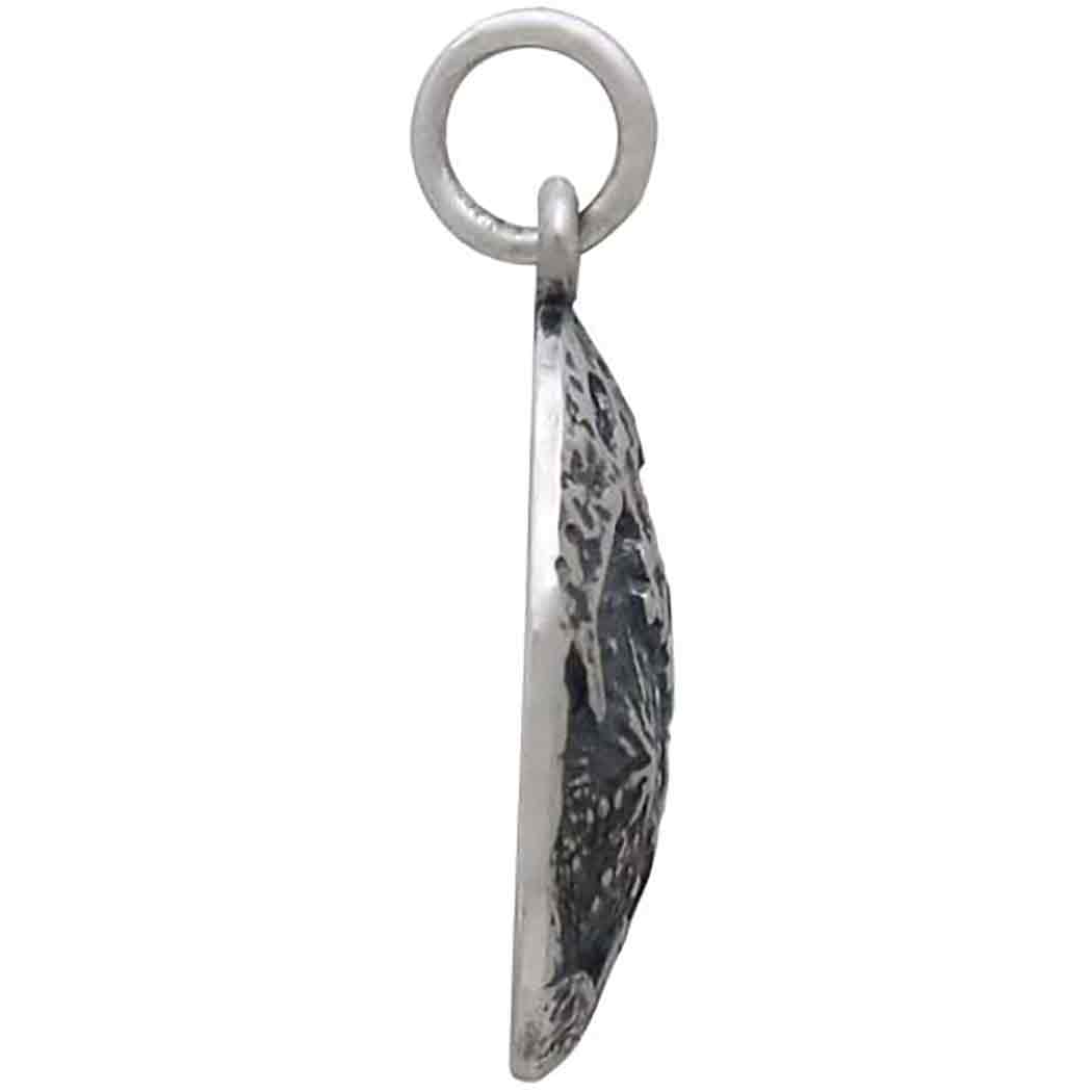 Bask in the light of the moon whenever you wear this sterling silver full moon charm. It is beautifullly textured with peaks, valleys, and craters to evoke the surface of the moon. The slightly concave surface lends the piece dimension, even while the back is hollowed out to reduce weight.