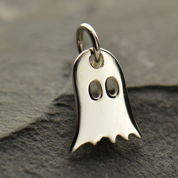 Sterling Silver Ghost Charm. This little guy is ready to come out from a dark corner and say "boo!". But he's a friendly little ghost, not a terrifying spirit from the past. This charm is cute and perfect for Halloween themed jewelry, or even for someone who may be a fan of a classic arcade game. Discover other haunting charms in our Halloween Collection!