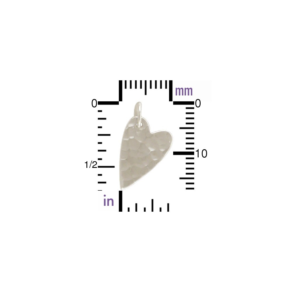 Small Sterling Silver Hammer Finish Heart Charm. A great design with an off center jump ring and flat surface! Wear it alone or in a collection of other charms for a fun, flirty look. Click here to see our entire collection of hearts!