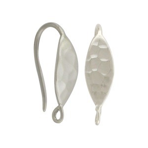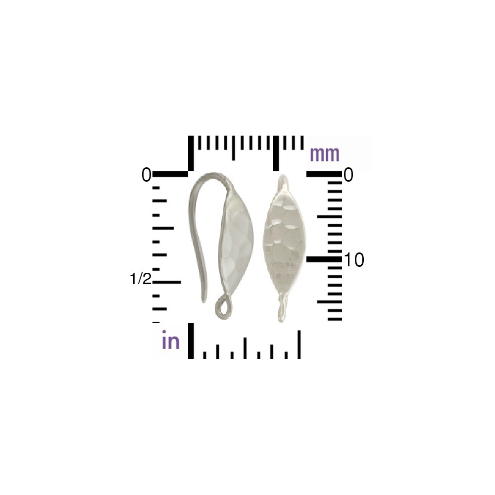 Sterling Silver Hook Earring with Hammer Finish. These silver ear hooks feature a hammered almond shape front. The bottom loop opens to allow easy hanging of your favorite gemstone or charm! This minimal design adds a spark to your design without overwhelming it.