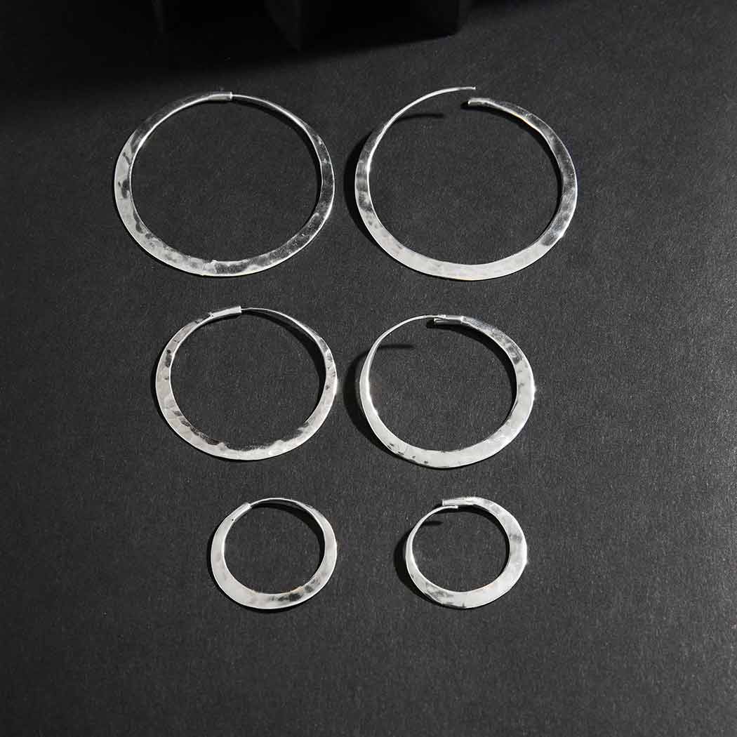 These sterling silver hammered hoop earrings are the perfect everyday earring. Handmade in Bali with a hammer and great skill the silversmiths make light dance on silver. Hand hammered texture is one of the oldest techniques in jewelry design, and for good reason. Available in three sizes - 20mm, 30mm and 40mm.
