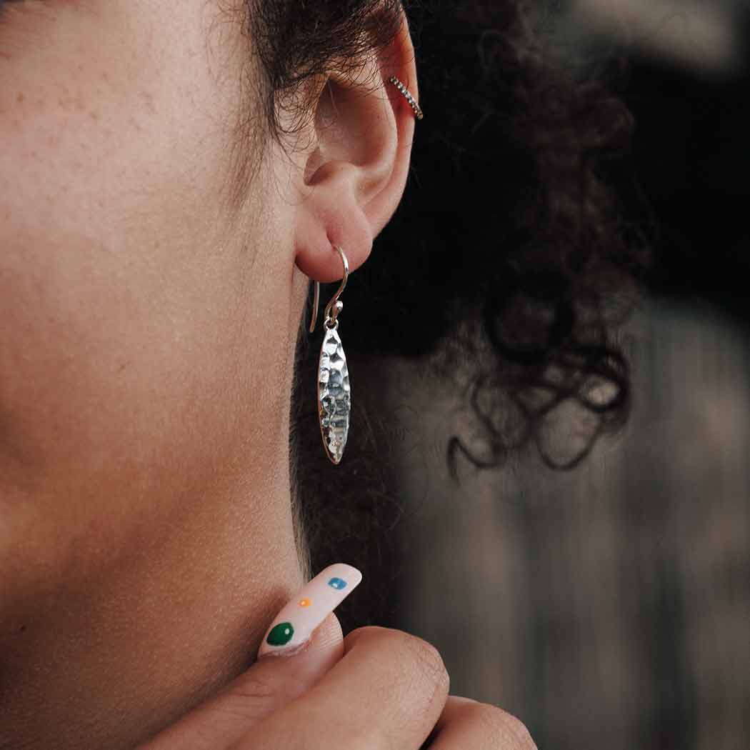 Shimmery and satisfying, these sterling silver hammered oval dangle earrings are an easy addition to jewelry lines that're rustic with modern touches. Each oval dangle is hand forged by Balinese silversmiths who make light dance over its hammered surface.