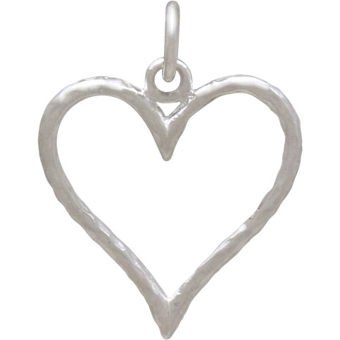 Here we present a sterling silver hammered wire heart charm, hand forged and full of artistry. It's a simple heart, perfectly proportioned, and sometimes that's exactly what we want, or our customers want, and our jewelry designs demand.