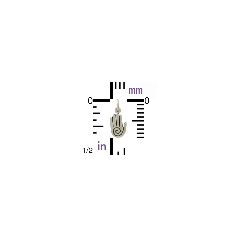 Sterling Silver Healing Hand Charm. Borrowed from Native American pictographs, this symbol is used most often today to symbolize the energy-emitting hand of a Reiki or other spiritual healer. The meaning of the pictographic form, which is found in many places in the southwestern US, isn't confirmed, but with its solar spiral is thought to represent a Shaman's powers.