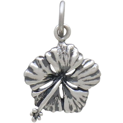 Add a touch of the tropics to your jewelry line with this sterling silver hibiscus charm. This showy, large blossom is found in many colors, and is the flower of the Hindu goddess Kali, who is often depicted merging with the blossom in form. The hibiscus is also honored as Hawaii's state flower, and when worn behind the left ear means the woman is married, and when worn on the right means she is available.