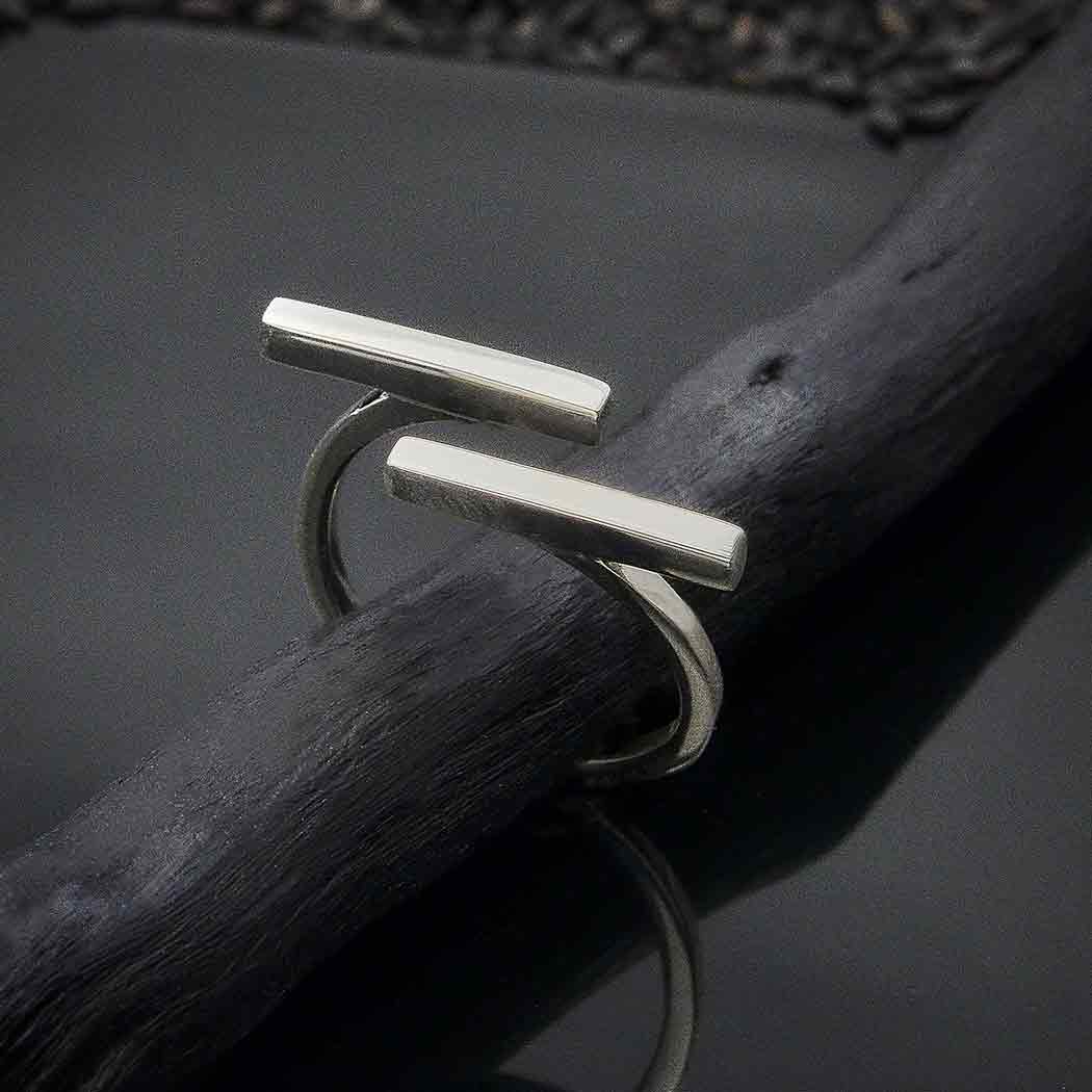 Make a statement when you list this sterling silver horizontal bar adjustable ring in your shop. Two offset, solid bars of silver run side by side to form a surprisingly sexy, sleek, and hyper modern ring you won't be able to take your eyes off of. It looks as if two silver bars are floating atop your fingers. Simply magical. Shop our Ring Collection for more ready to wear beauties.