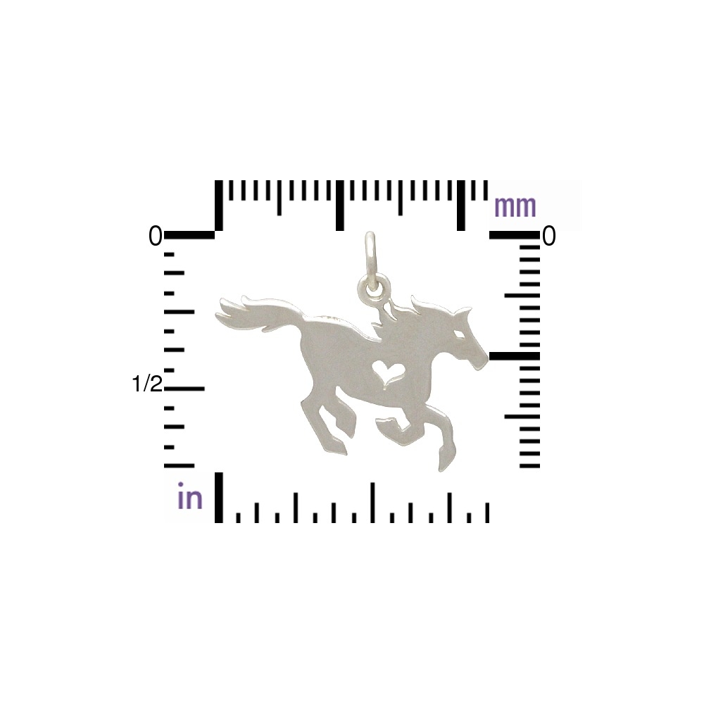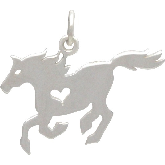 Sterling Silver Horse Charm with Heart Cutout. This delightful Equestrian Charm is a great way to show your love for horseback riding and horses. Due to threir natural companionship with humans, horses easily win a special place in our hearts, earning high marks for honor and grace. Horses have come to stand for power, beauty, strength, freedom, and nobility.
